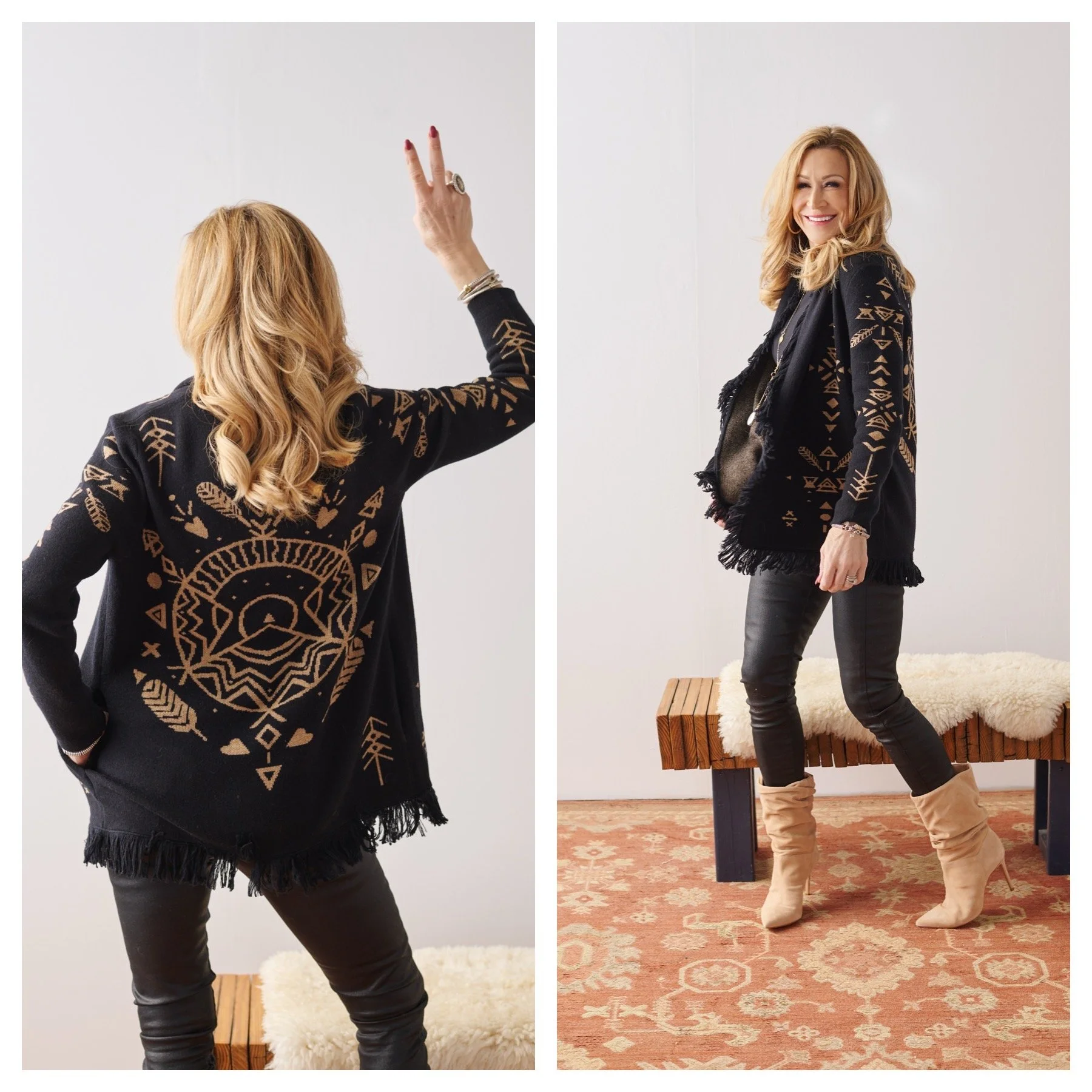Johnny Was is one of my favorite brands…it’s boho chic at it’s best! They recently sent me a few pieces and I couldn’t be happier about it! The cardigan above is a wear everywhere piece that will turn heads because it’s so interesting! I paired it with faux leather pants, a black tank and scrunch boots from Schutz! I also have these boots in black…they’re comfortable and affordable!