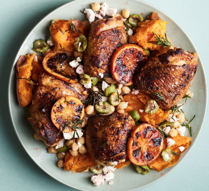 Charred Chicken with Sweet Potatoes and Oranges - Bon AppΓ©tit