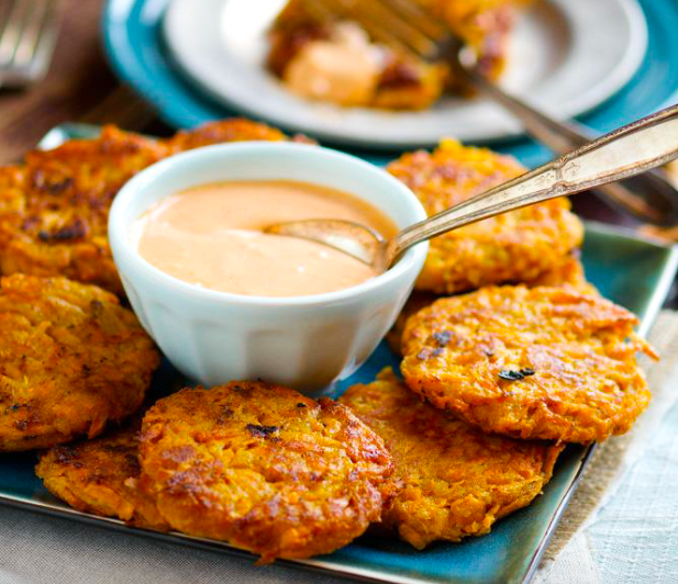 Sweet Potato Fritters with Sriracha Mayonnaise - Ciao Chow Bambino