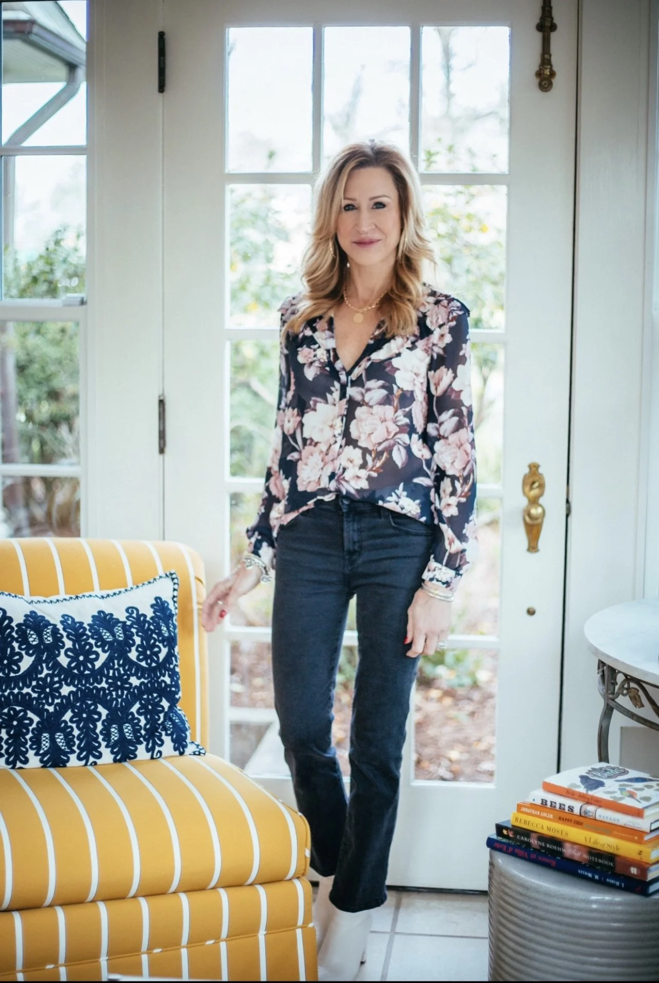 I think white booties always add an unexpected element to an outfit! I paired a floral blouse and grey jeans with Marc Fisher white booties for a simple but cute look!