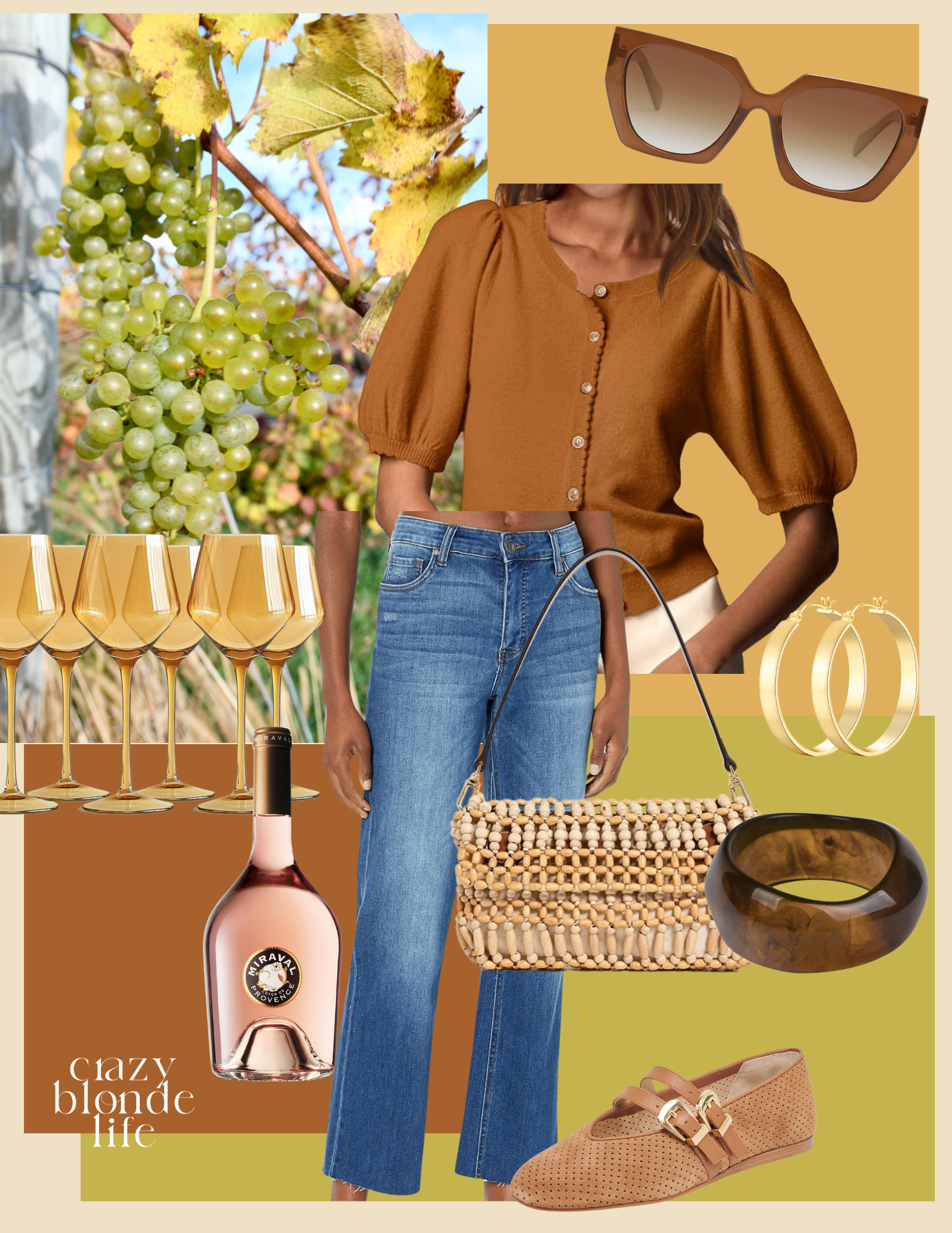Fall is the perfect time to visit a winery…the weather is beautiful and sipping a glass of wine on a sunny afternoon surrounded by grapevines is such a treat! This outfit is perfect for walking around…comfortable and put together! If you can’t make it to a winery, consider inviting friends over for a tasting!