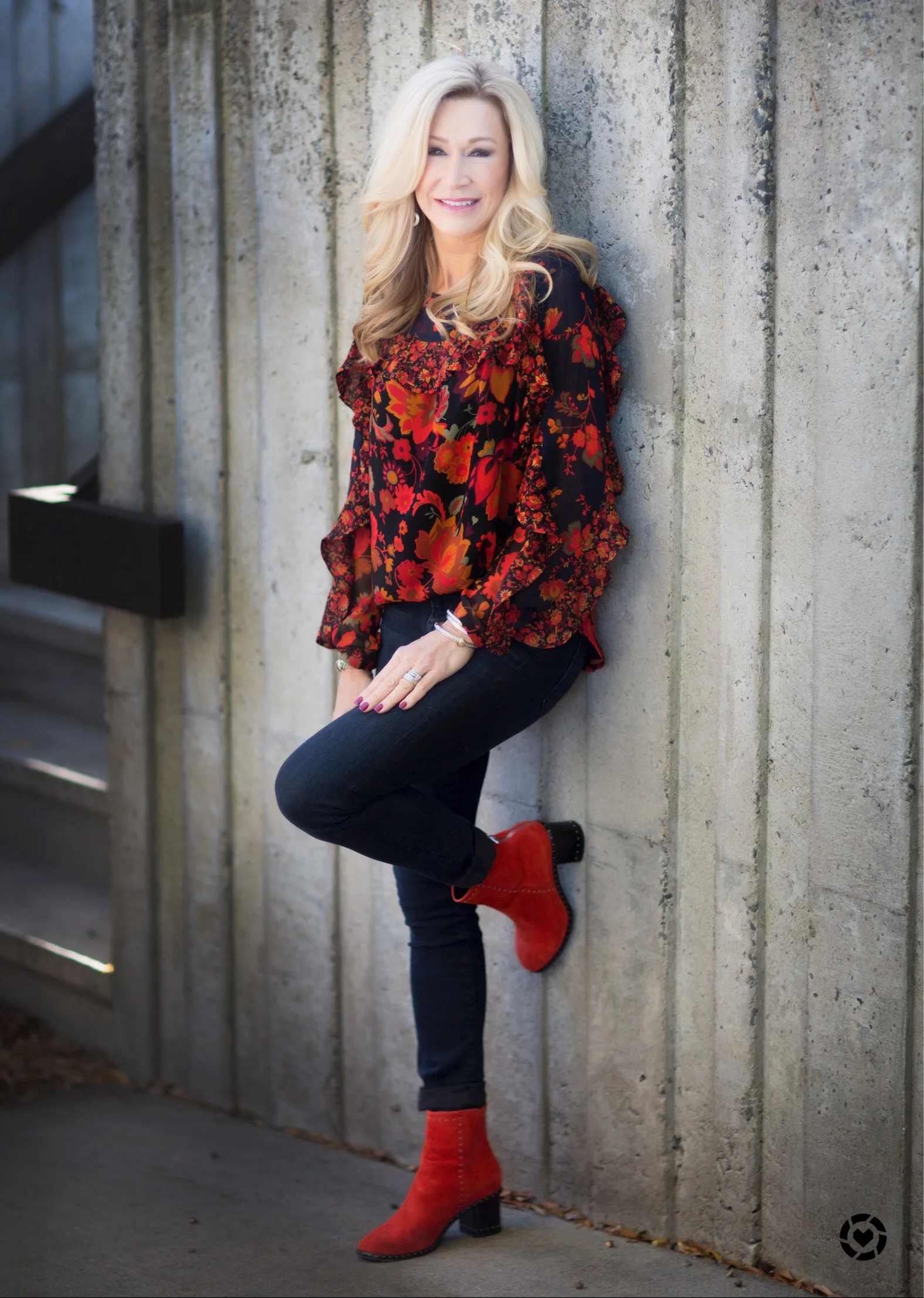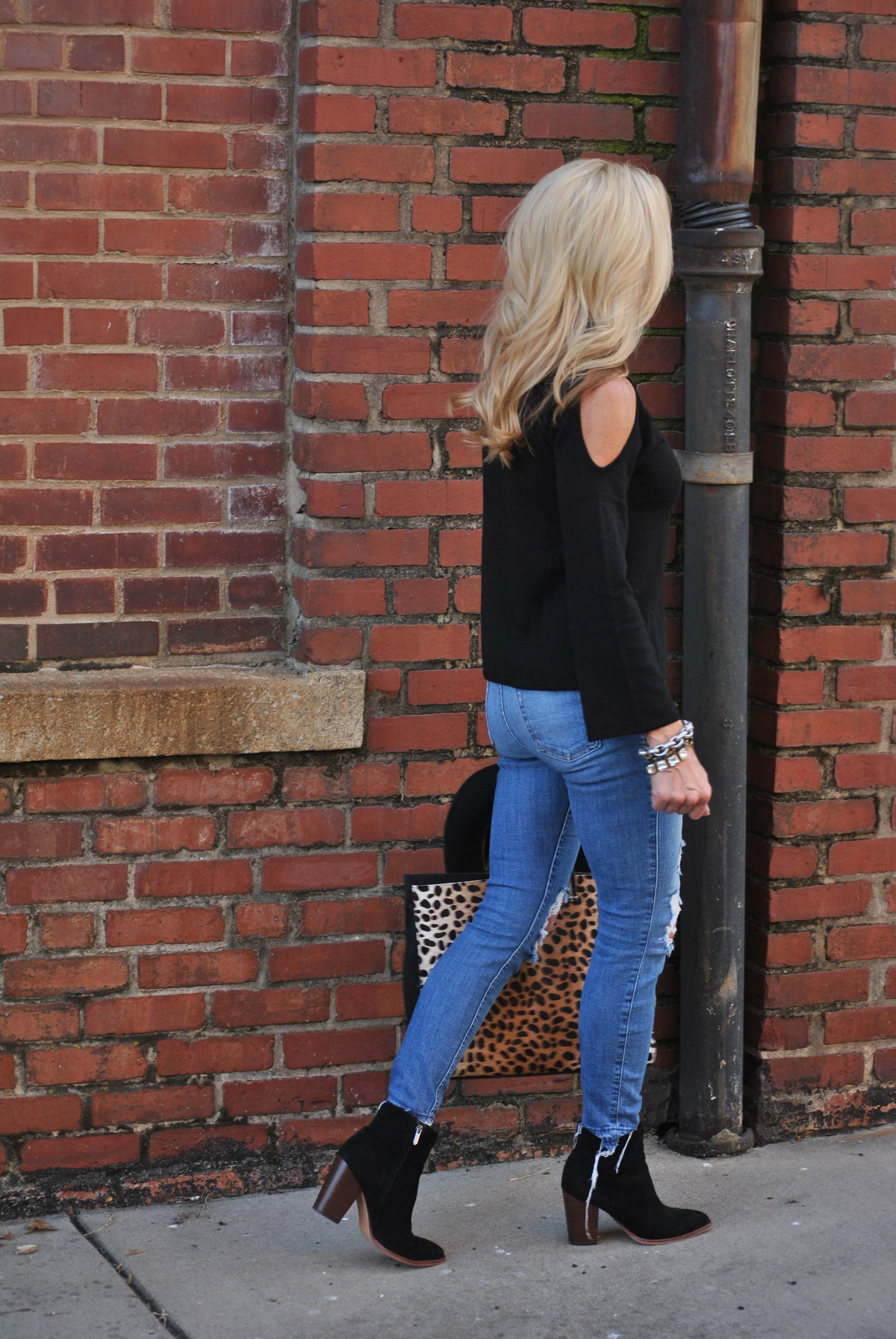 Loft Blouse, Frame Denim jeans, Rag and Bone booties (same boots, different color)