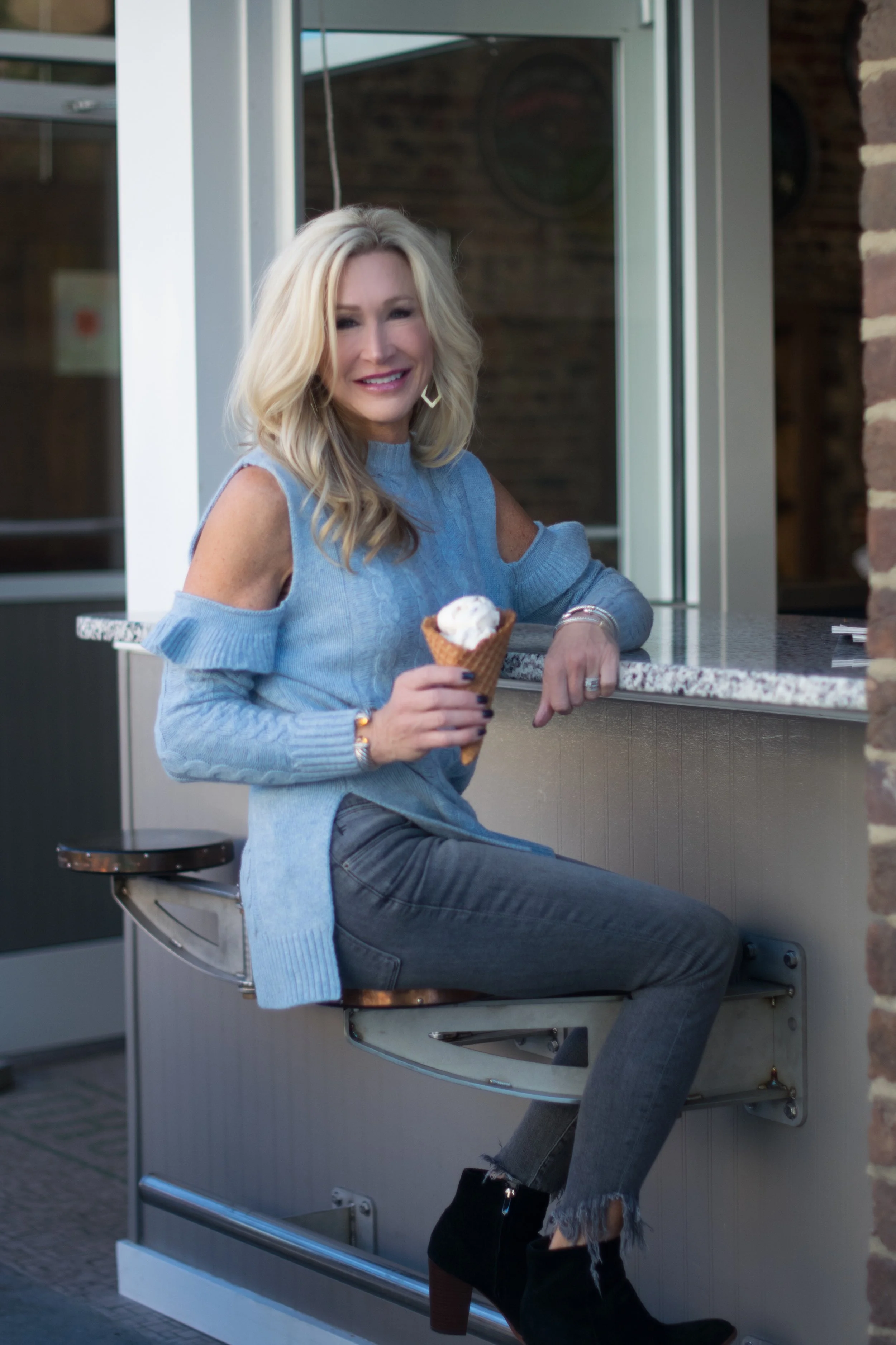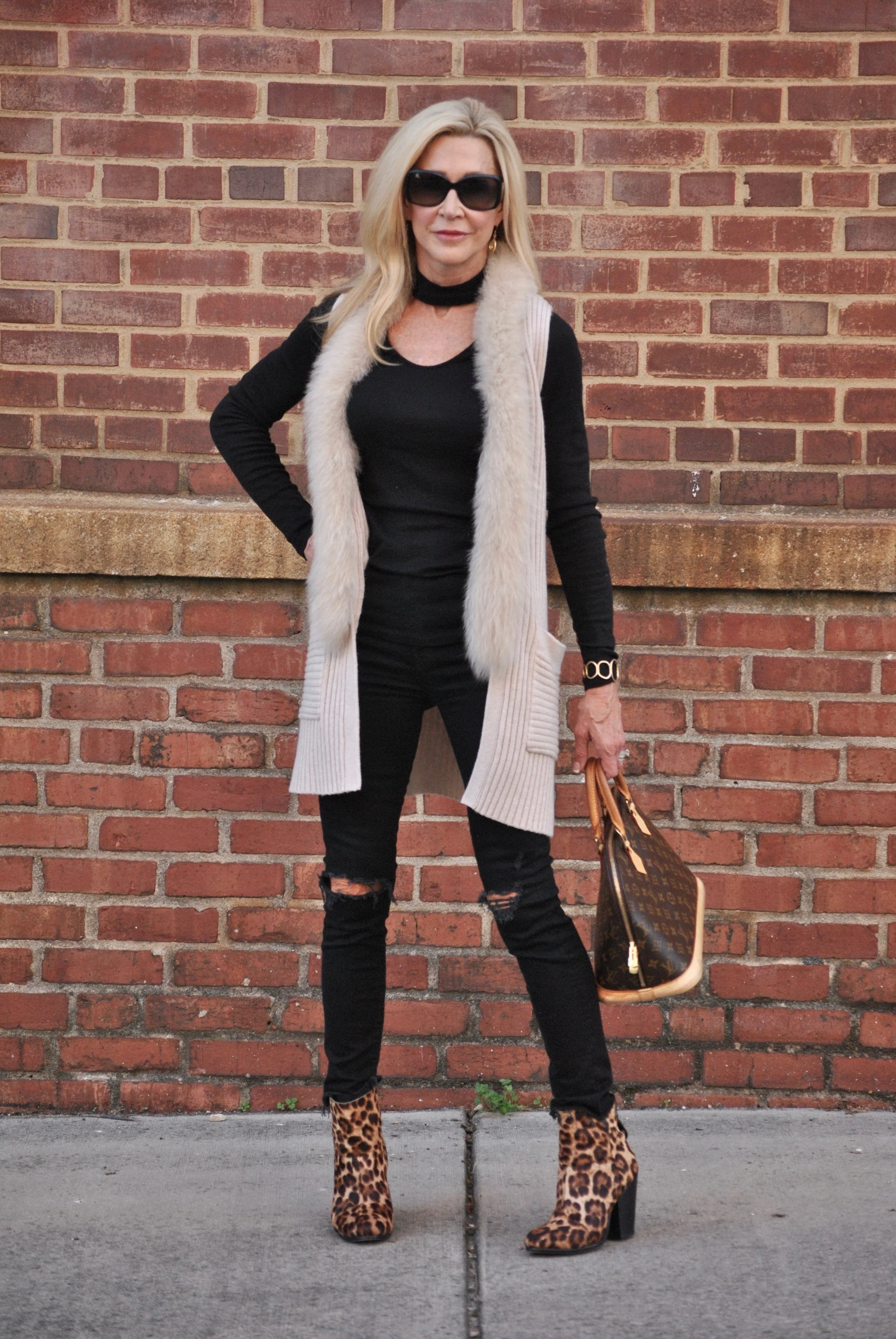Loft blouse, Anna Cate sweater vest, Rag and Bone jeans, Stuart Weitzman boots