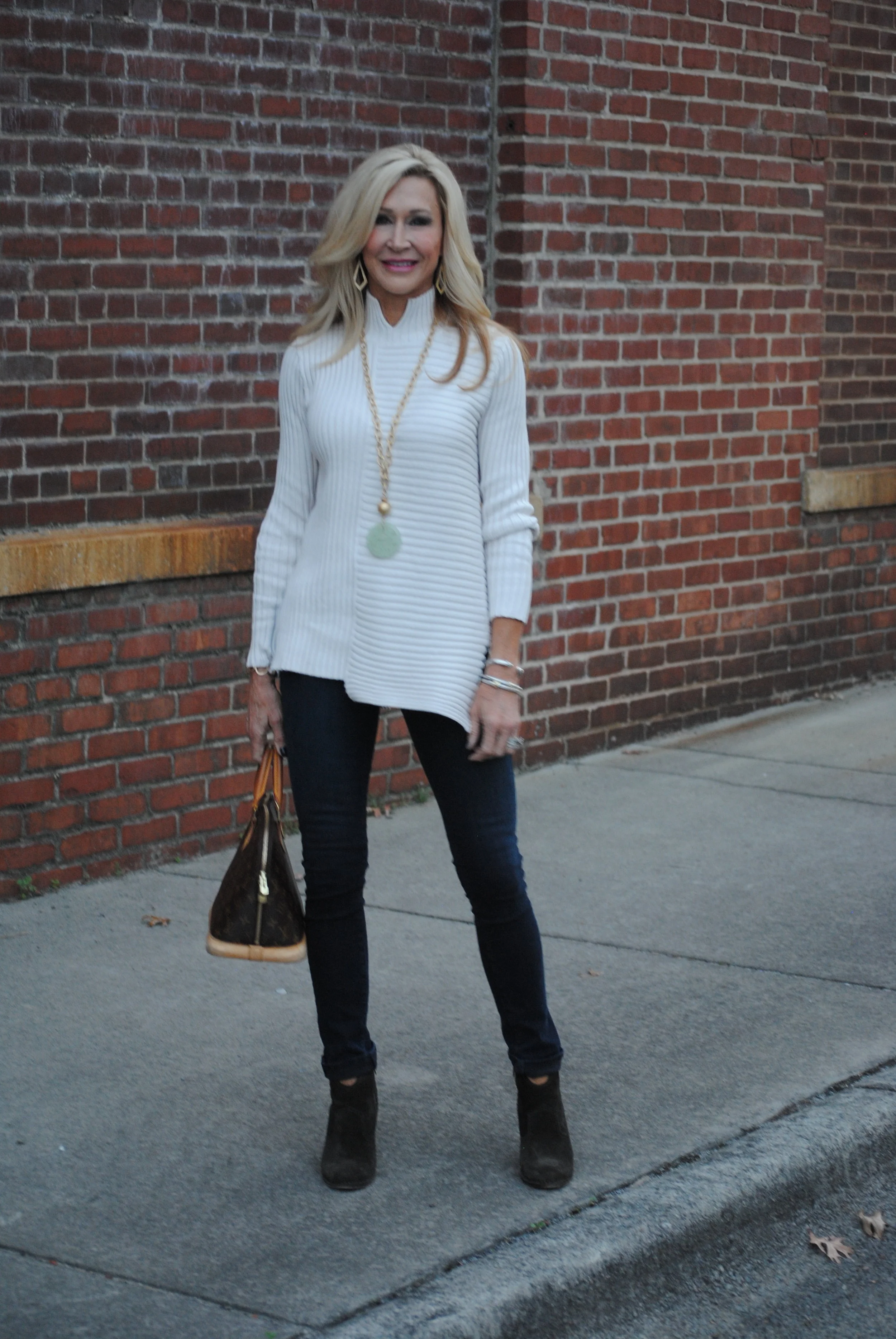 Vince sweater, Cabi pants, Rag and Bone booties (similar)