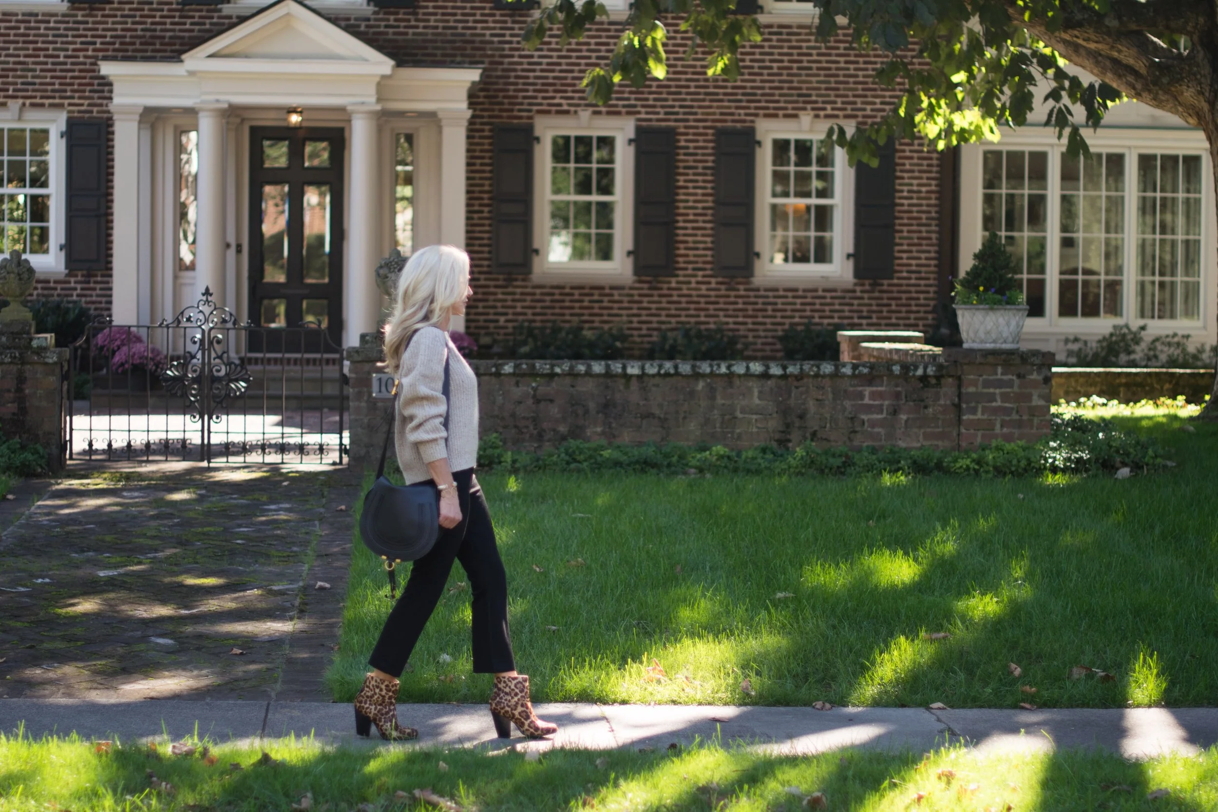 Gap Sweater (similar), Leopard Bag (similar), Sam Edelman booties