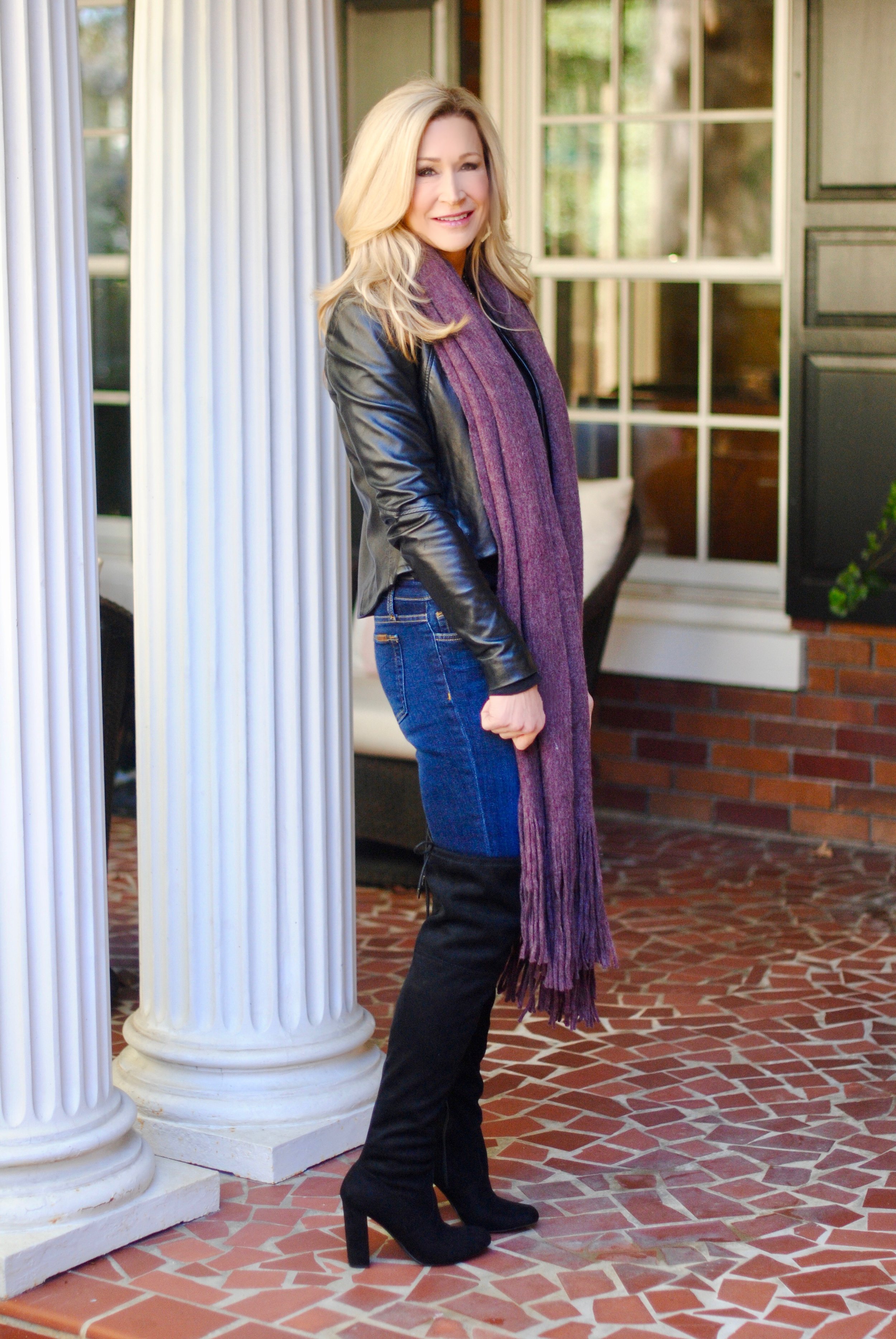 Cabi Sweater (similar), Tibi silk cami, Splendid over-the-knee boots, leather leggings