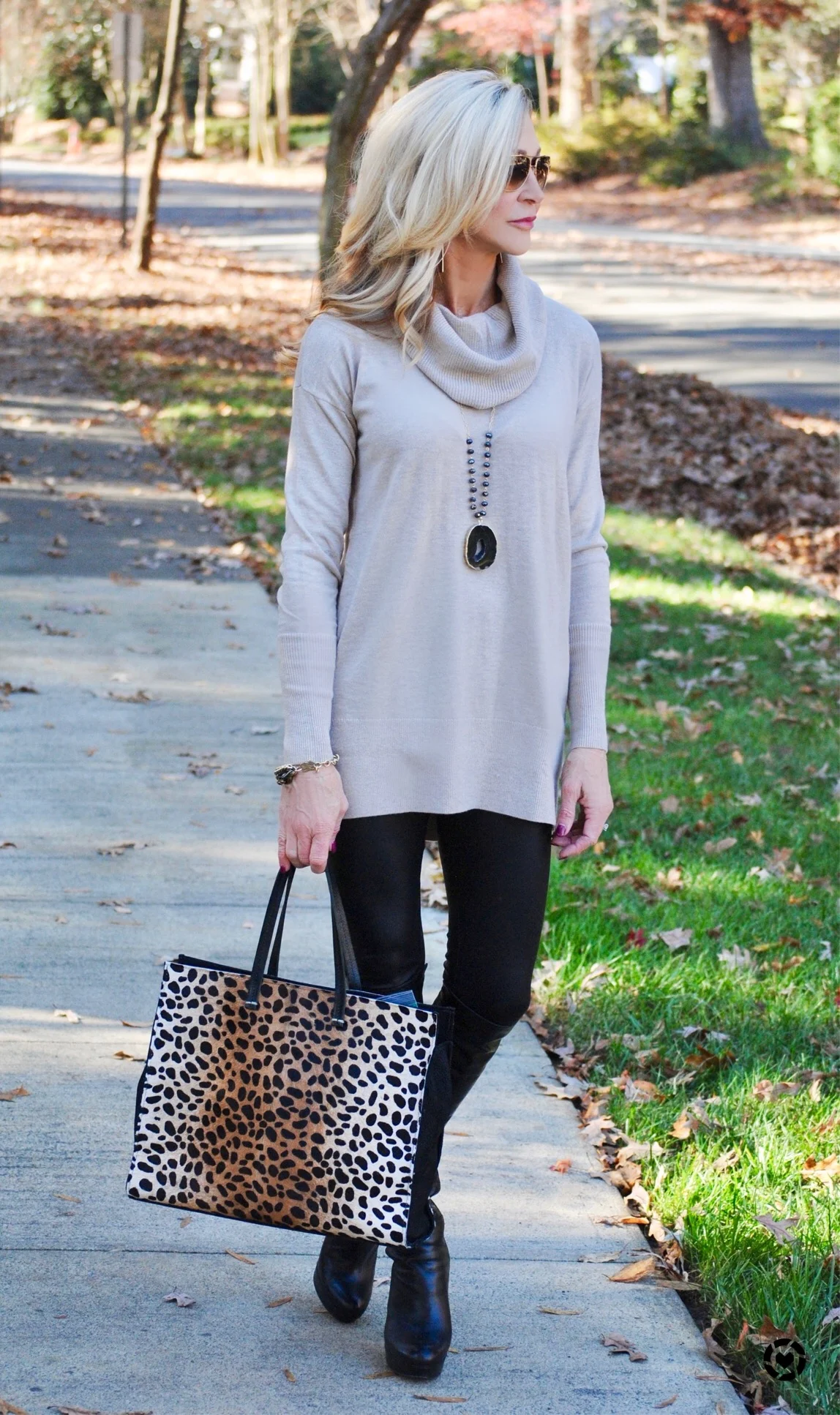 Loft sweater, leather leggings, leopard bag, Stuart Weitzman boots