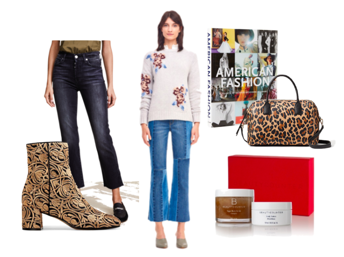 7 For All Mankind Edie Jeans, M. Gemi The Corsa, Rebecca Taylor Floral Pullover, Assouline American Fashion, Kate Spade Leopard Print Lottie, BeautyCounter Winter Glo Body Duo
