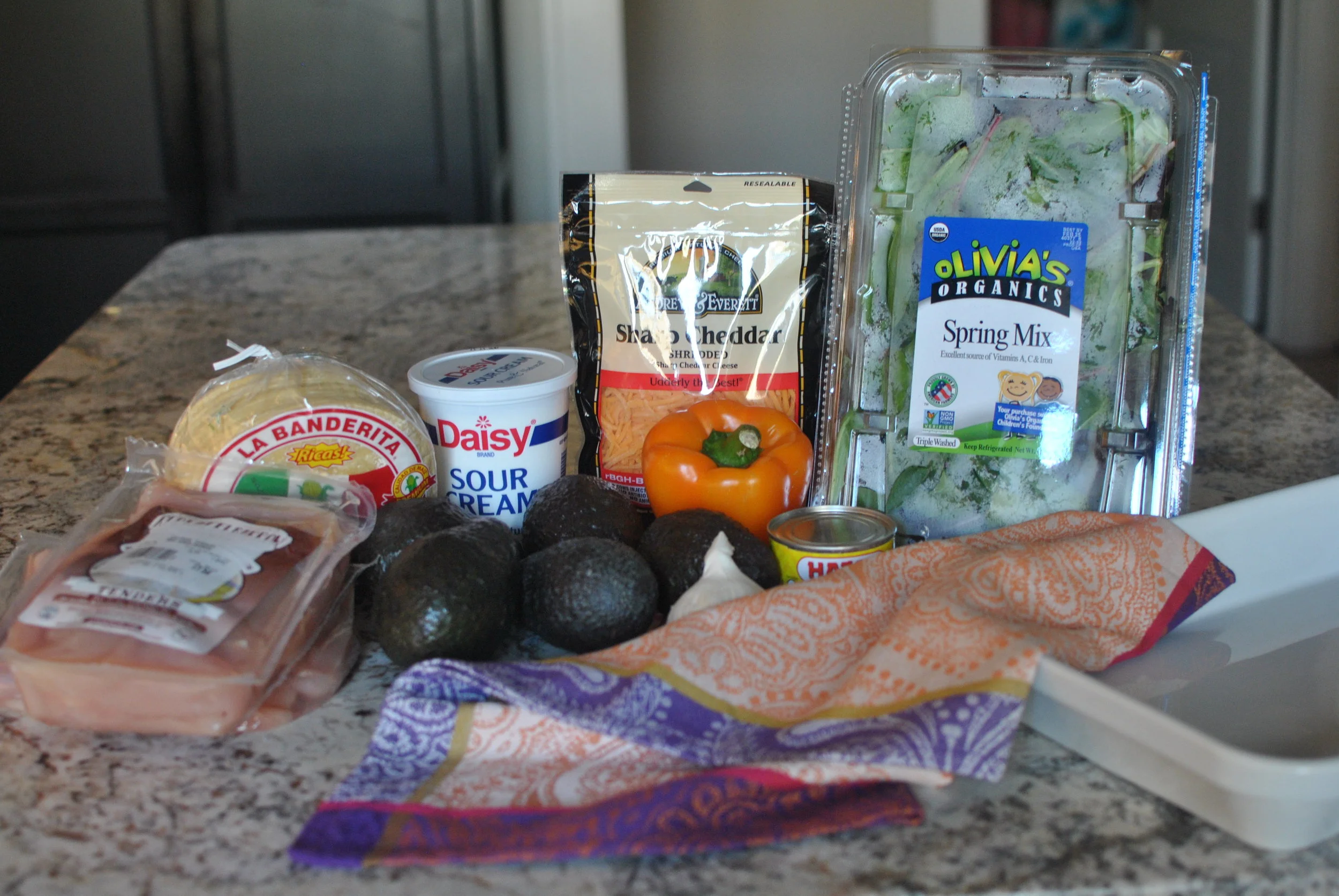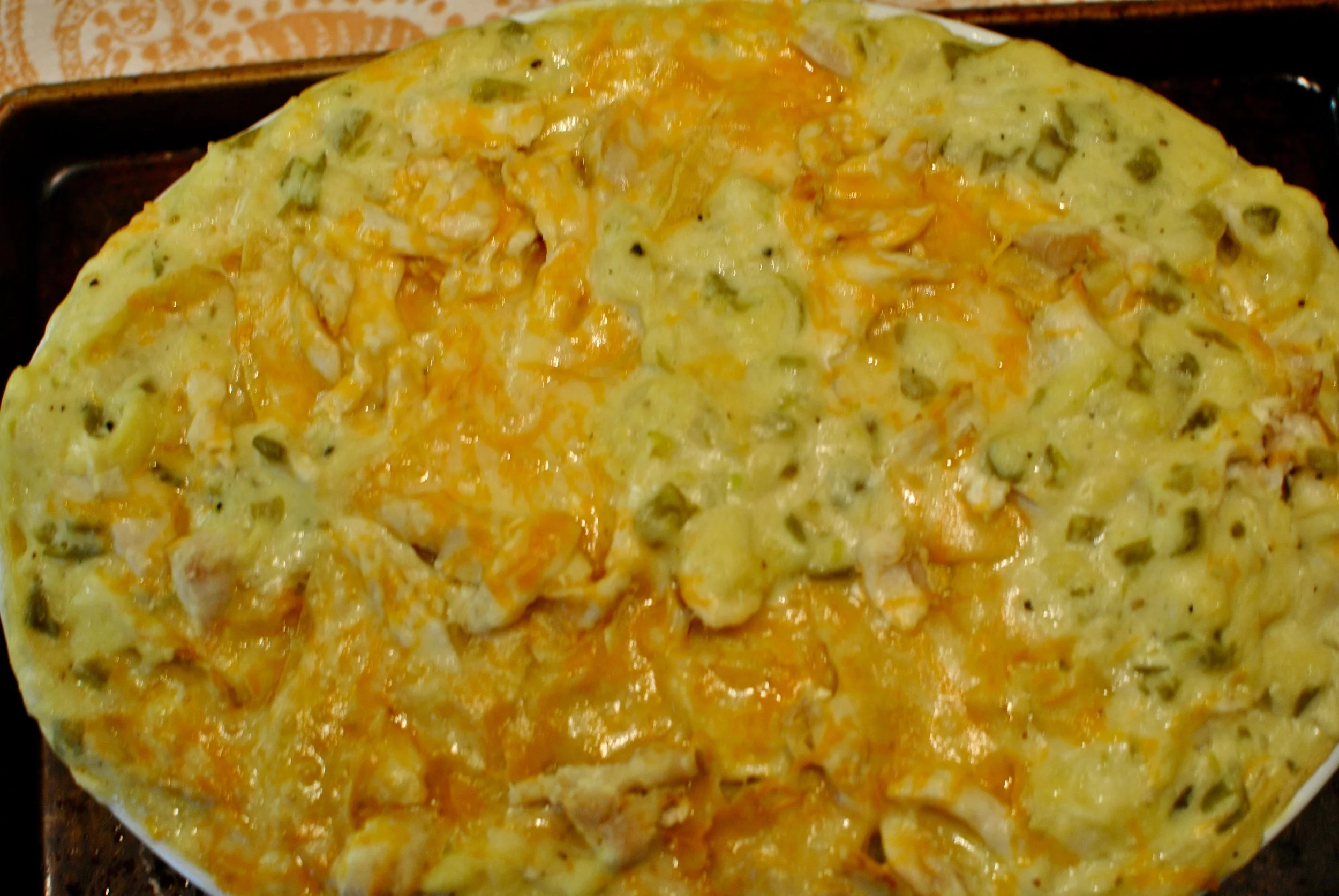 I made this fabulous Chicken Tortilla Casserole on Sunday night for dinner. I'm trying to spend as much time as possible with Lauren, Chris and Hudson before they leave on Friday, so I decided to have everyone over for dinner. Cooking wasn't really at the top of my list of things to do Sunday night, because I had cooked so much for Sarah's wedding. I decided to make this really rich and hearty casserole because it's easy to prepare and feeds a crowd.