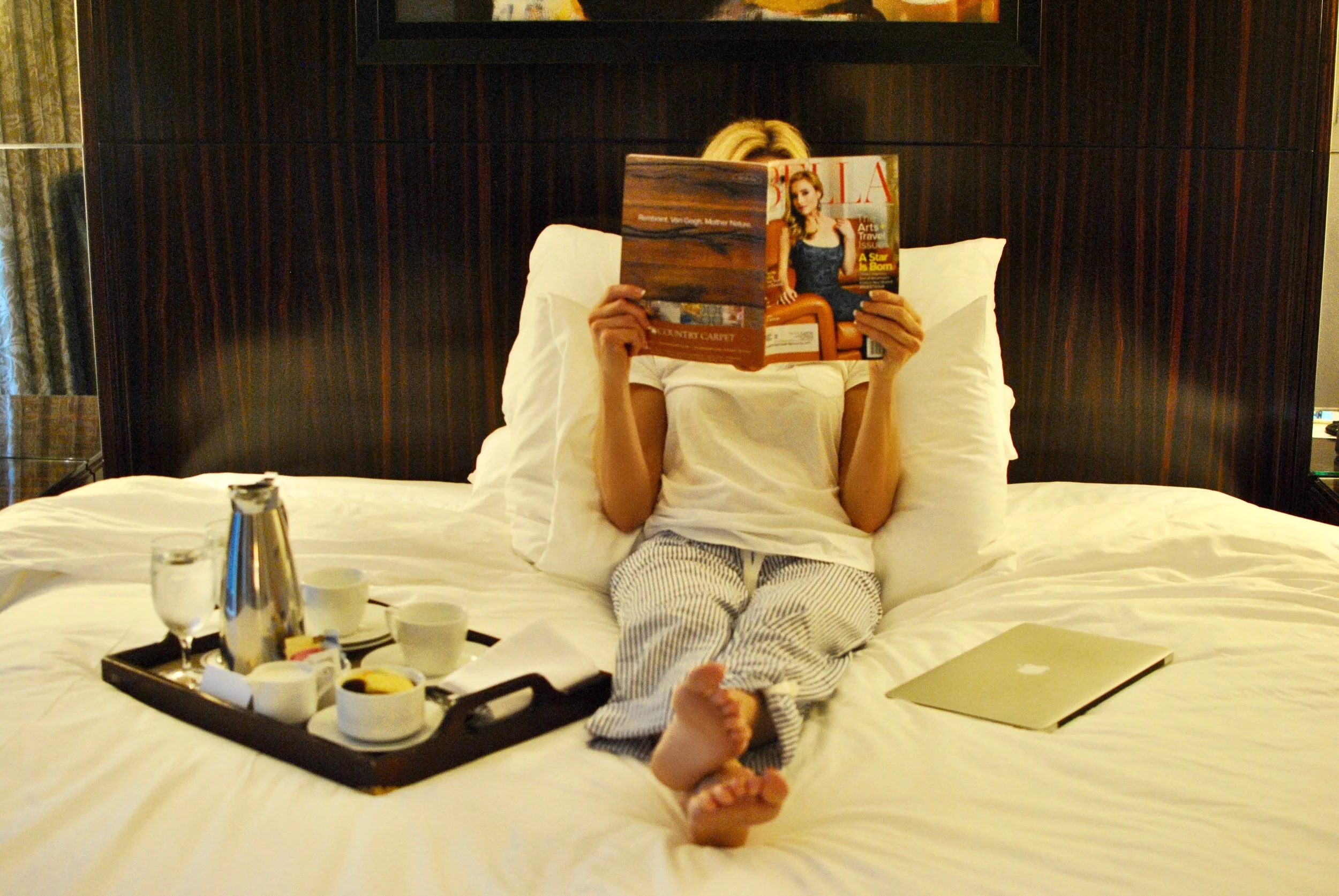 There is nothing better than room service coffee in bed with a magazine and my computer! I hope you all have a great day! I'm off to story time!