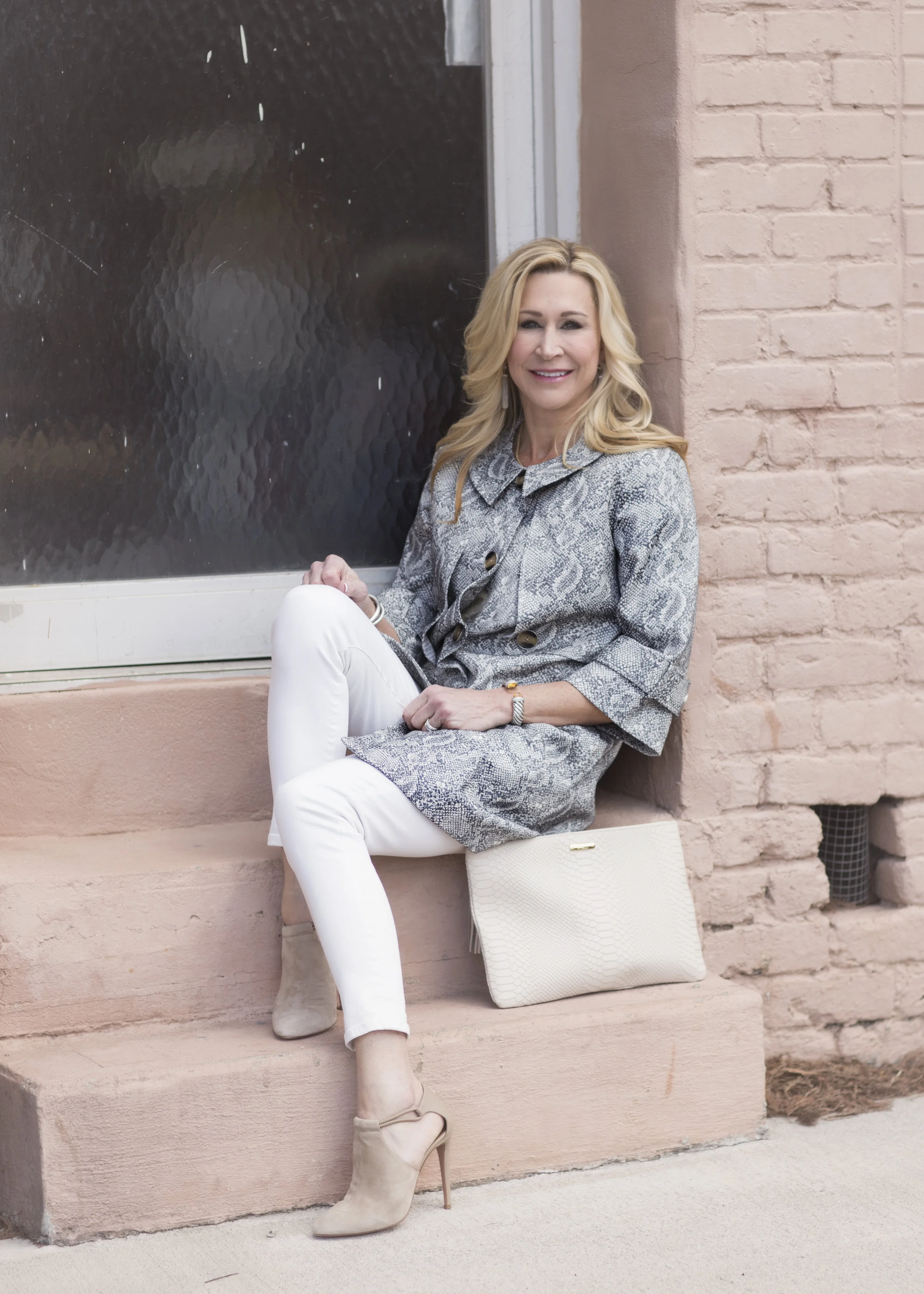 I've always been one to wear a spring time coat and I have quite a collection, but there is always room for one more! While the weather has been so nice here, it is still a little chilly, especially in the morning and a lightweight coat is just the thing to keep me looking nice and keep me warm at the same time. I found this coat at the Cabi Outlet at Tanger Outlets and I love it! I think the bracelet sleeve is perfect for this time of year. I basically wore this coat as my top, although I do have a tank on underneath. Paired with cream colored jeans and my Aquazzura shoes, it's a perfect outfit for those days when I need a little extra warmth.