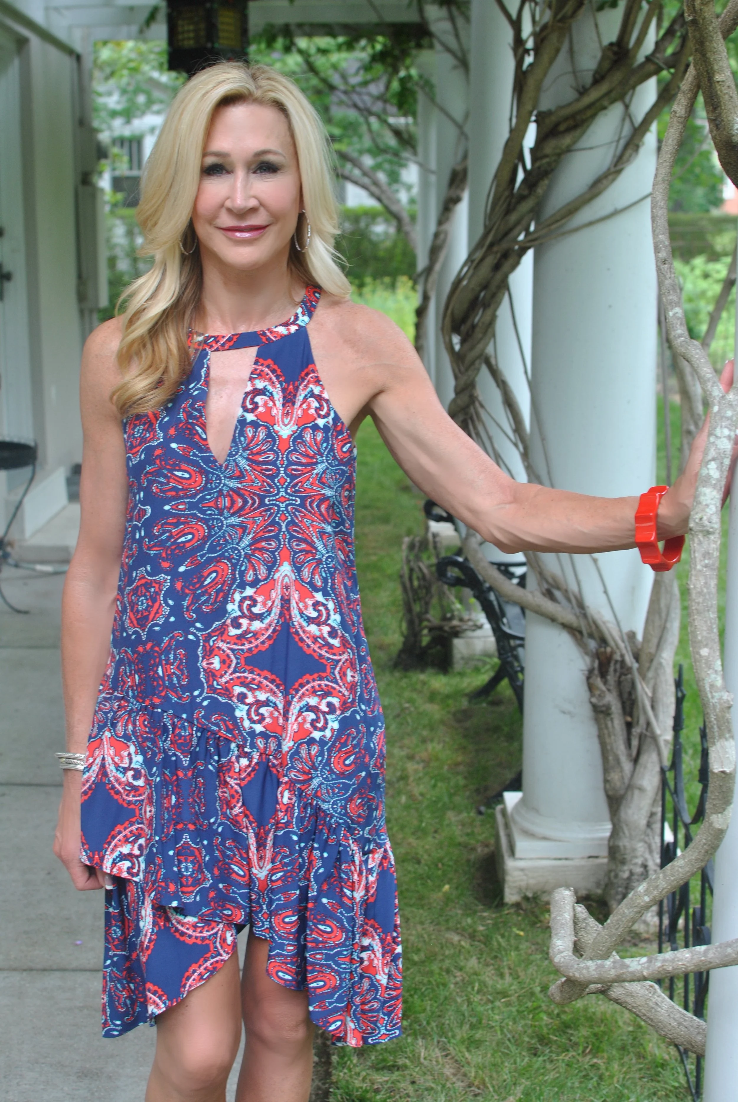 I saved the best for last! Another one of my Cabi favorites is this fabulous and very affordable grey dress. The fabric is so soft and it's fitted, but forgiving (meaning I can eat while wearing it). I paired it with my Chloe mini bag and Chloe espadrilles that I've worn sooo much (they are on major sald right now)! You can tell it's the end of the afternoon because I'm having a glass of Rose on the porch!