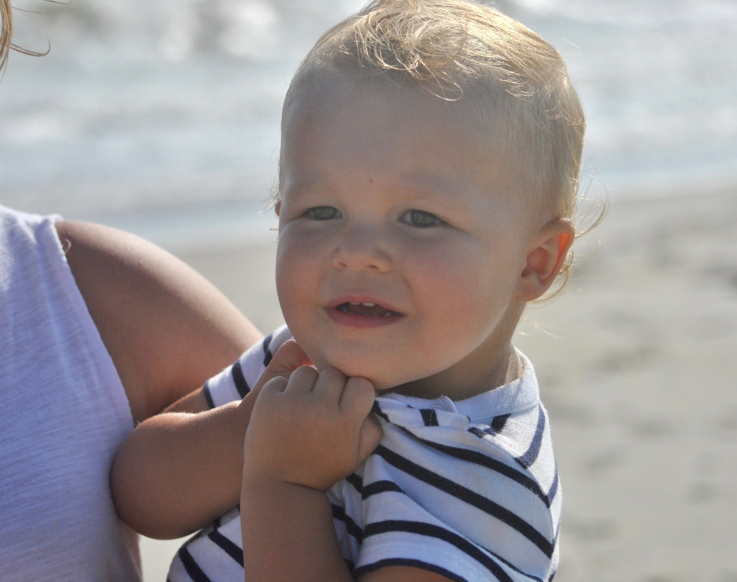 We took Hudson to the beach right after they all got here yesterday...he was a little afraid, but I'm sure that by the time he leaves he'll be loving every minute of it!
