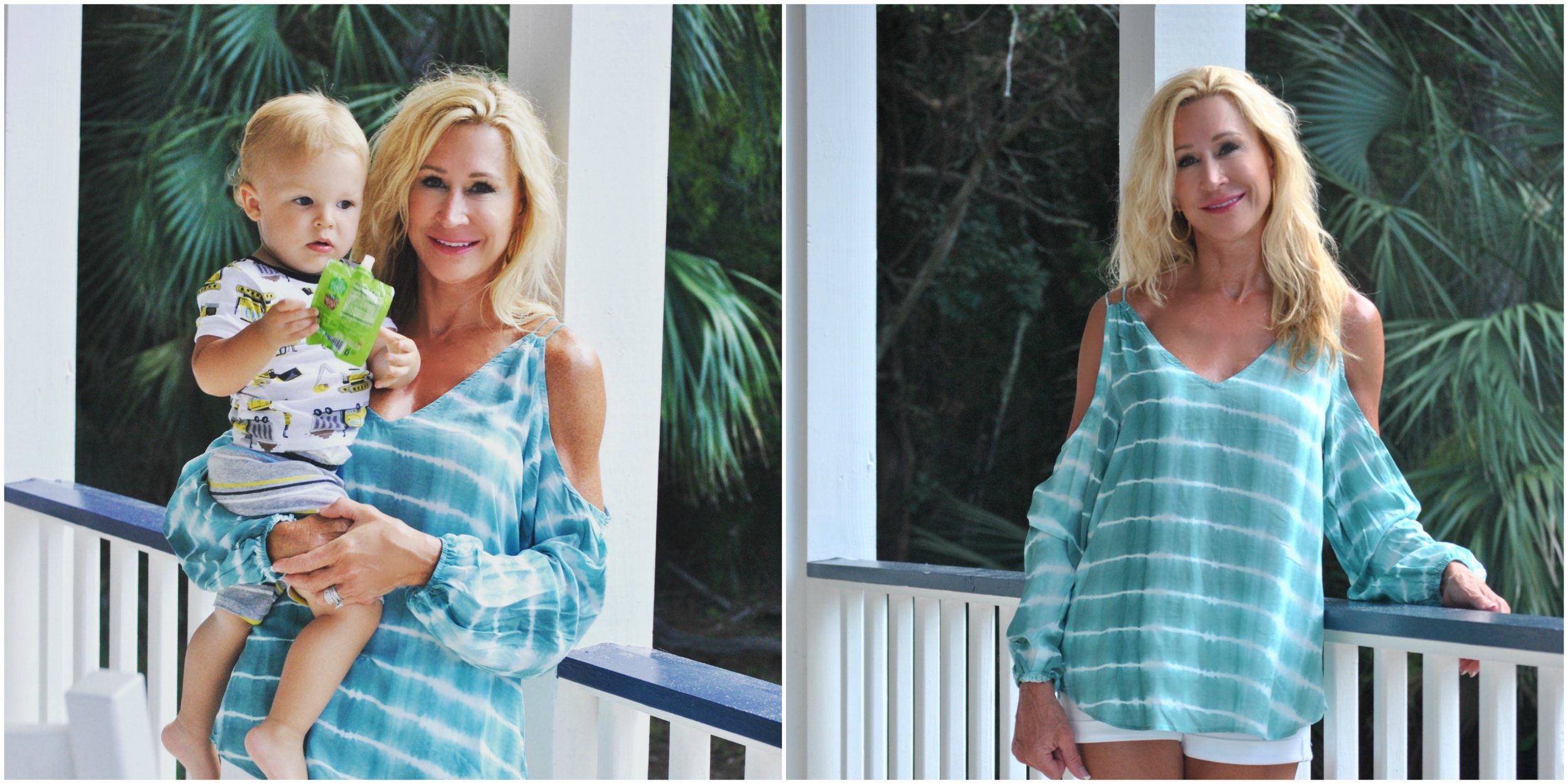I couldn't resist sharing just one more picture of Hudson on the porch at our house. I'm wearing one of my favorite boho tops from Island Passage. It's by Lovestitch and they have so many cute things!