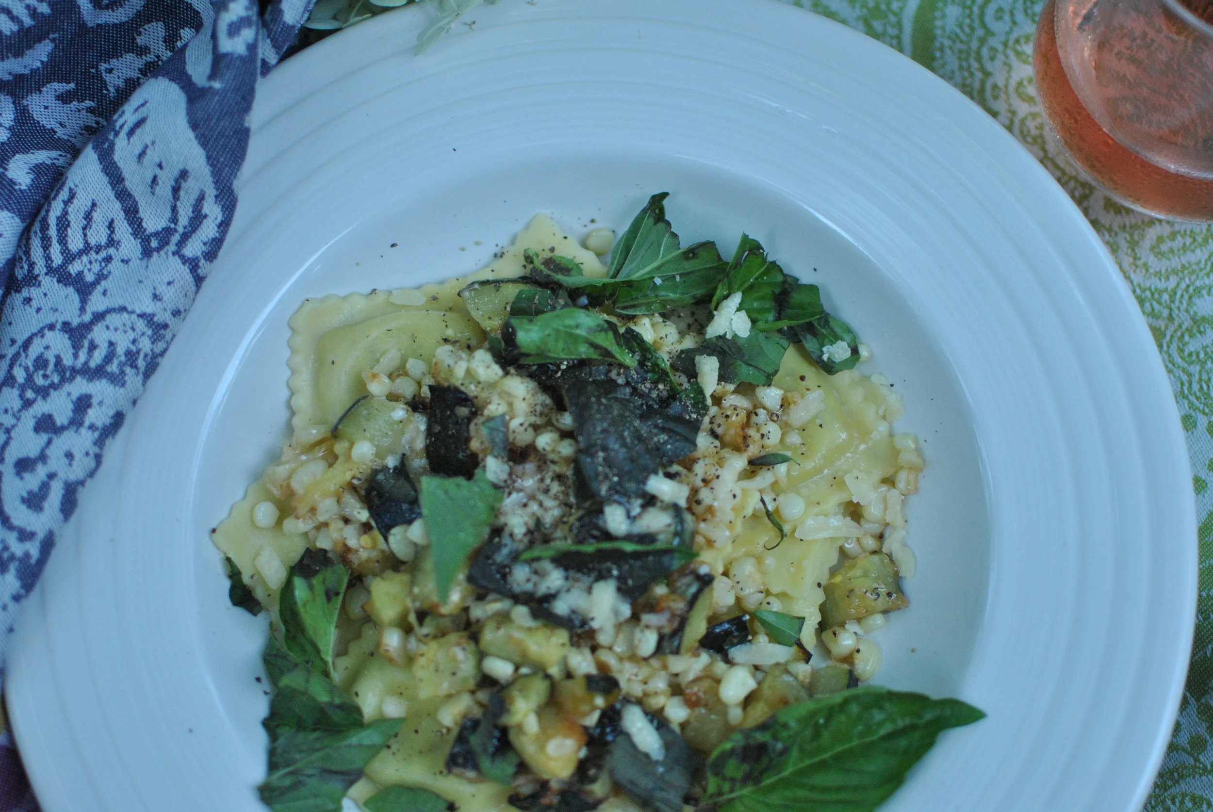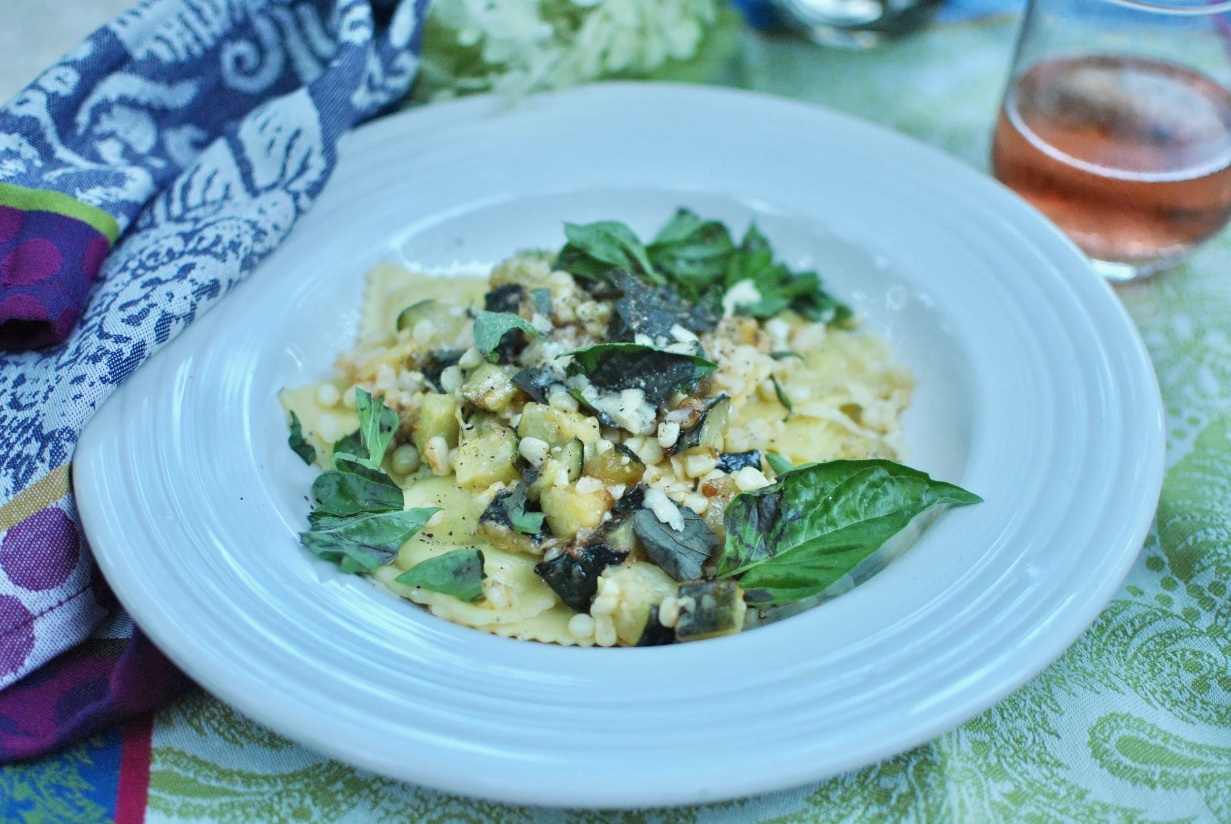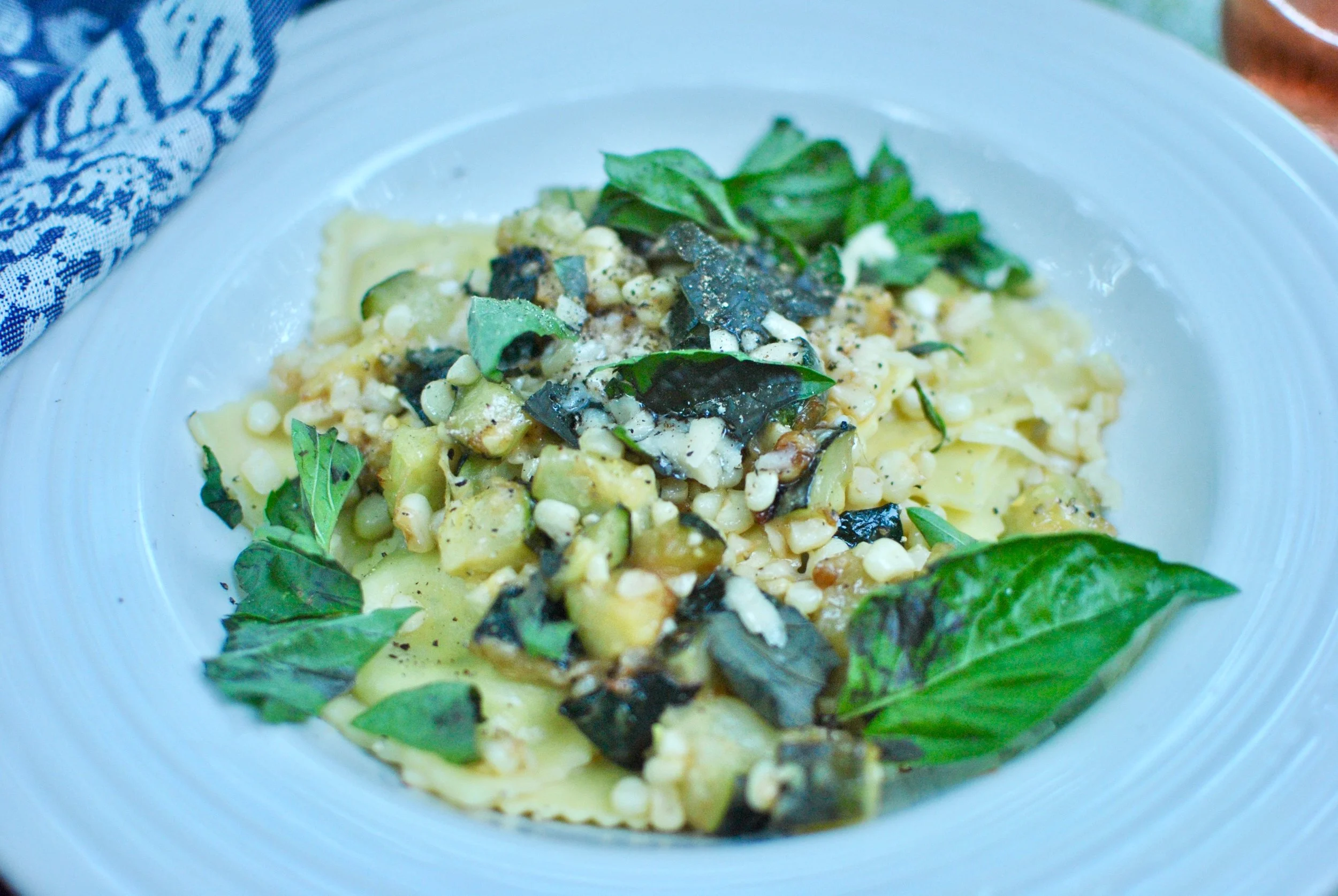 A recipe is only as good as it's ingredients and that's why summer is the ideal time to make this Ravioli with Roasted Zucchini and Corn. Fresh corn, zucchini and loads of fresh basil from the farmer's market combined with the best Parmigiano Reggiano cheese blend together to make an unbelievably delicious dish. The zucchini, corn and parmesan are roasted together with olive oil and lemon zest and the fresh basil is added at the end. This dish is quick and easy to make with frozen or fresh ravioli and is fancy enough for a dinner party. Your vegetarian friends will be happy as well. Keep scrolling for the recipe.