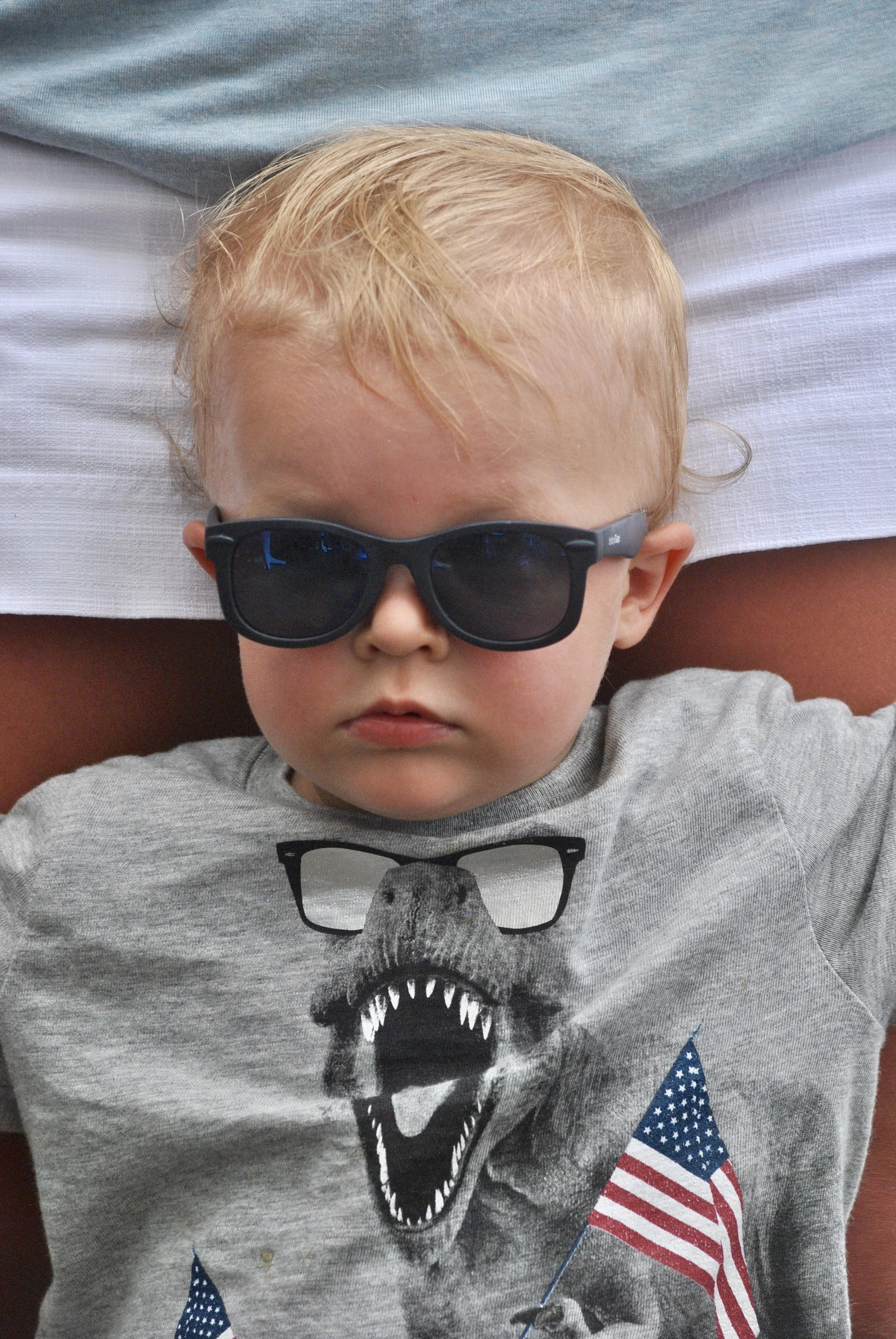 Summer time fashion is about easy outfits that take us where we want to go in style The sun is shining so brightly, the humidity is crazy and so is my hair. I secretly love the hot weather and I've been wearing clothes that keep me as cool as possible. I found this cute bohemian top at Loft and I love it with my Blank NYC white shorts from Island Passage and my Joie flat sandals. An all white look just feels cooler to me! The earrings are by Stella & Dot and are a fun and trendy addition to the outfit. Sarah's dress (similar here) is from Loft as well and Hudson just looks cool without even trying!