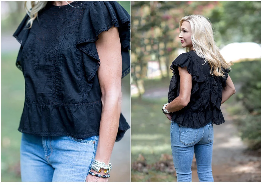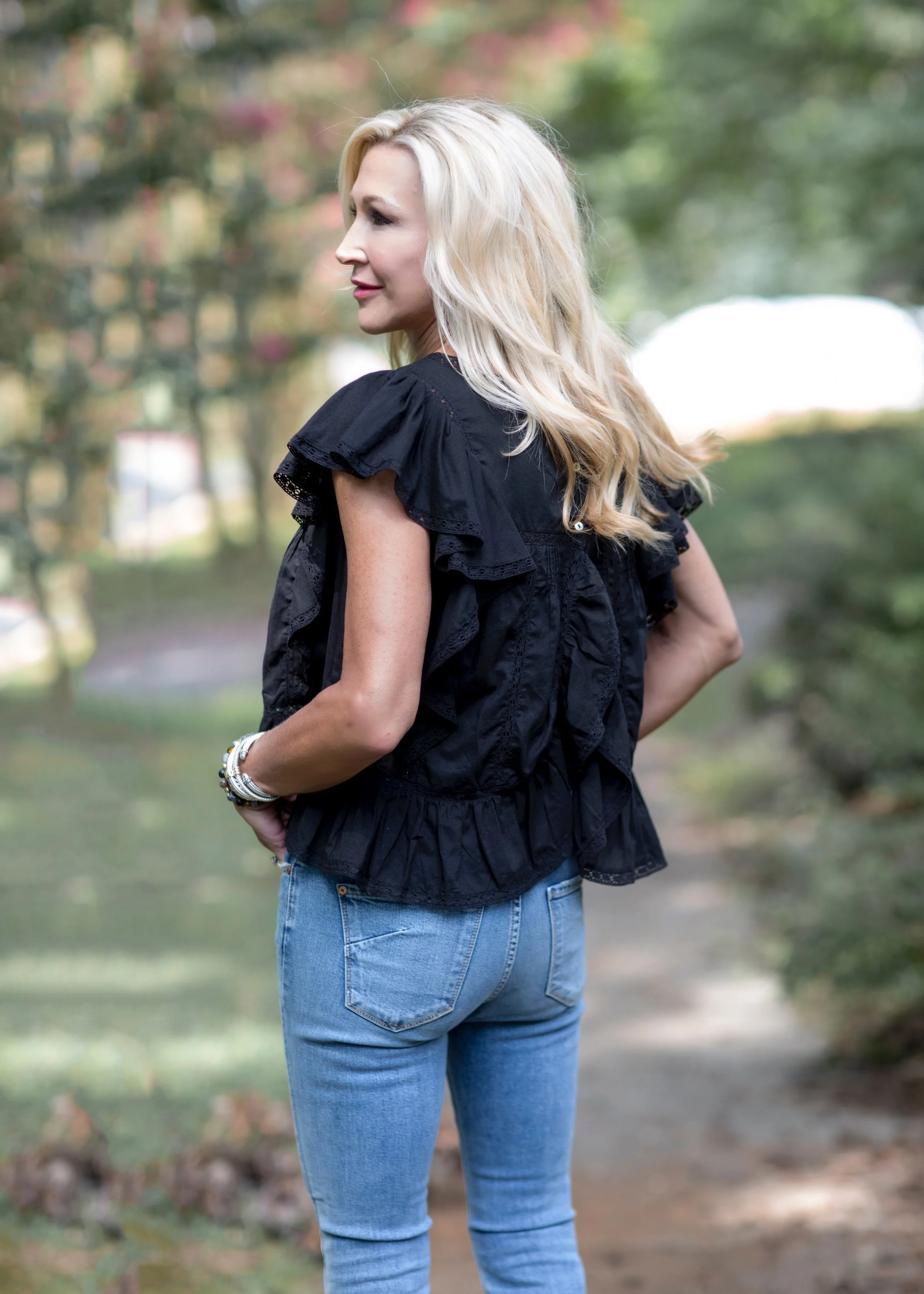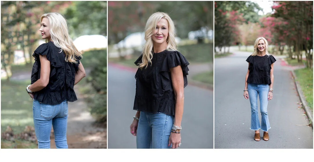 The shirt that I'm wearing is by Love Shack Fancy via Rebecca & Co. in Greensboro. Love Shack Fancy has so many cute things, including this fabulous skirt! I couldn't find the exact link to the shirt I'm wearing, but this one is similar. I've also linked some similar ones below.