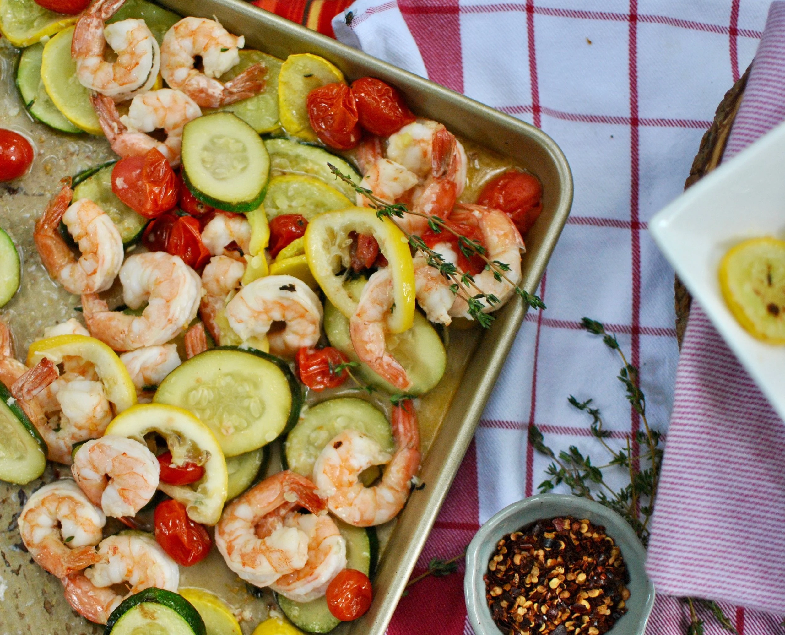 Easy Weeknight Dinner - Sheet Pan Shrimp and Vegetables with Rice