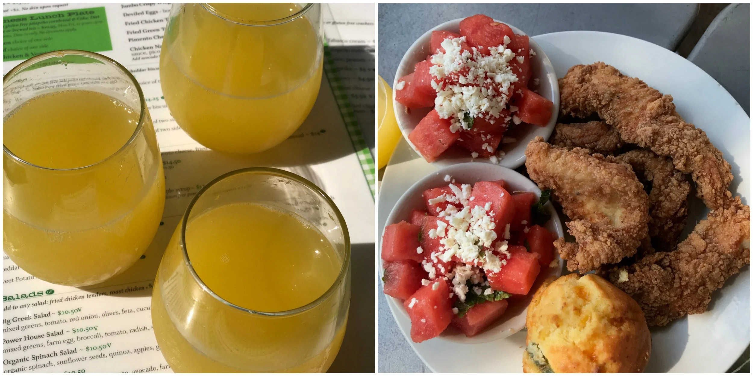 We had mimosas, really yummy watermelon salad and Lauren and Sarah had chicken fingers. The great thing about Avalon is that you can walk around with your mimosa and shop!