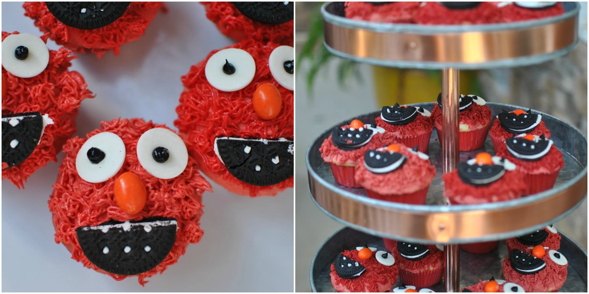 The cupcakes were made with oreo halves for the mouth, peanut M & M's for the nose and candy melts for the eyes. Just in case you ever want to make Elmo cupcakes, you can get the recipe here.