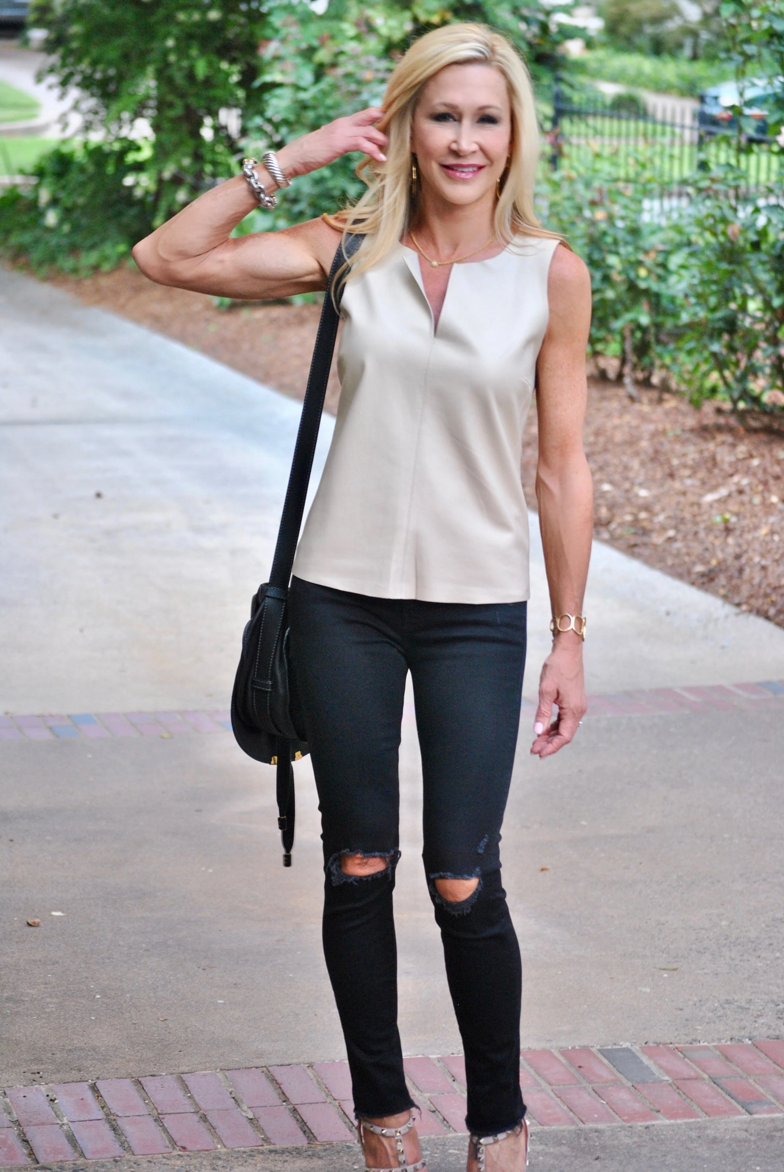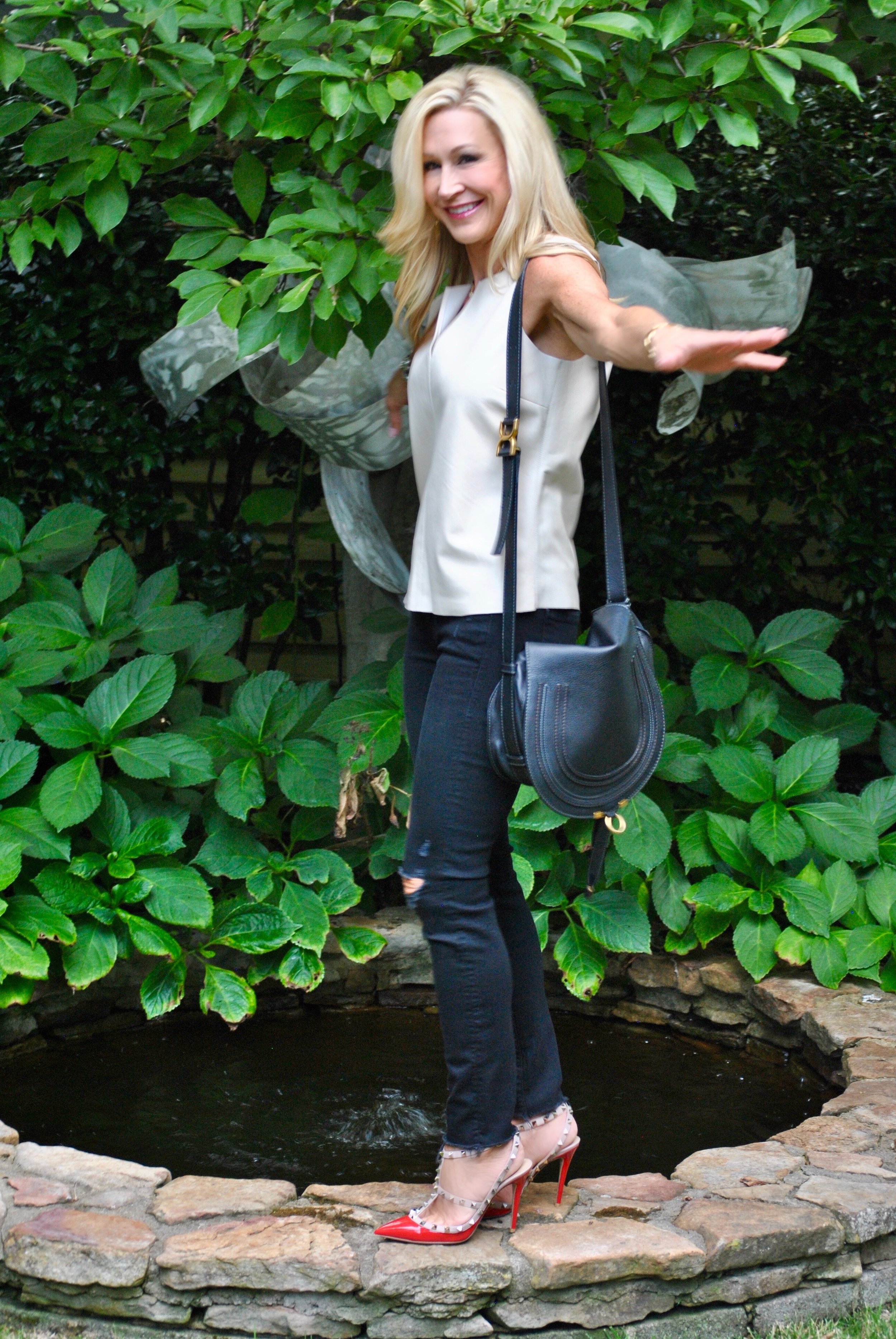 So finally, about the outfit! This leather top is another piece that I've had for years. The classic cut and neutral color make it a piece that will always be in style. It zips up the back and can be worn under a blazer when the weather gets cooler. It goes with jeans, skirts, dressier pants, etc. and is basically the perfect piece. It was somewhat of an investment, but has been well worth the money! I paired it with my black, cropped skinny jeans because I'm a jeans kind of girl, and dressed it up with red Valentino Rockstuds and my Chloe bag. I'm linking some similar pieces below.