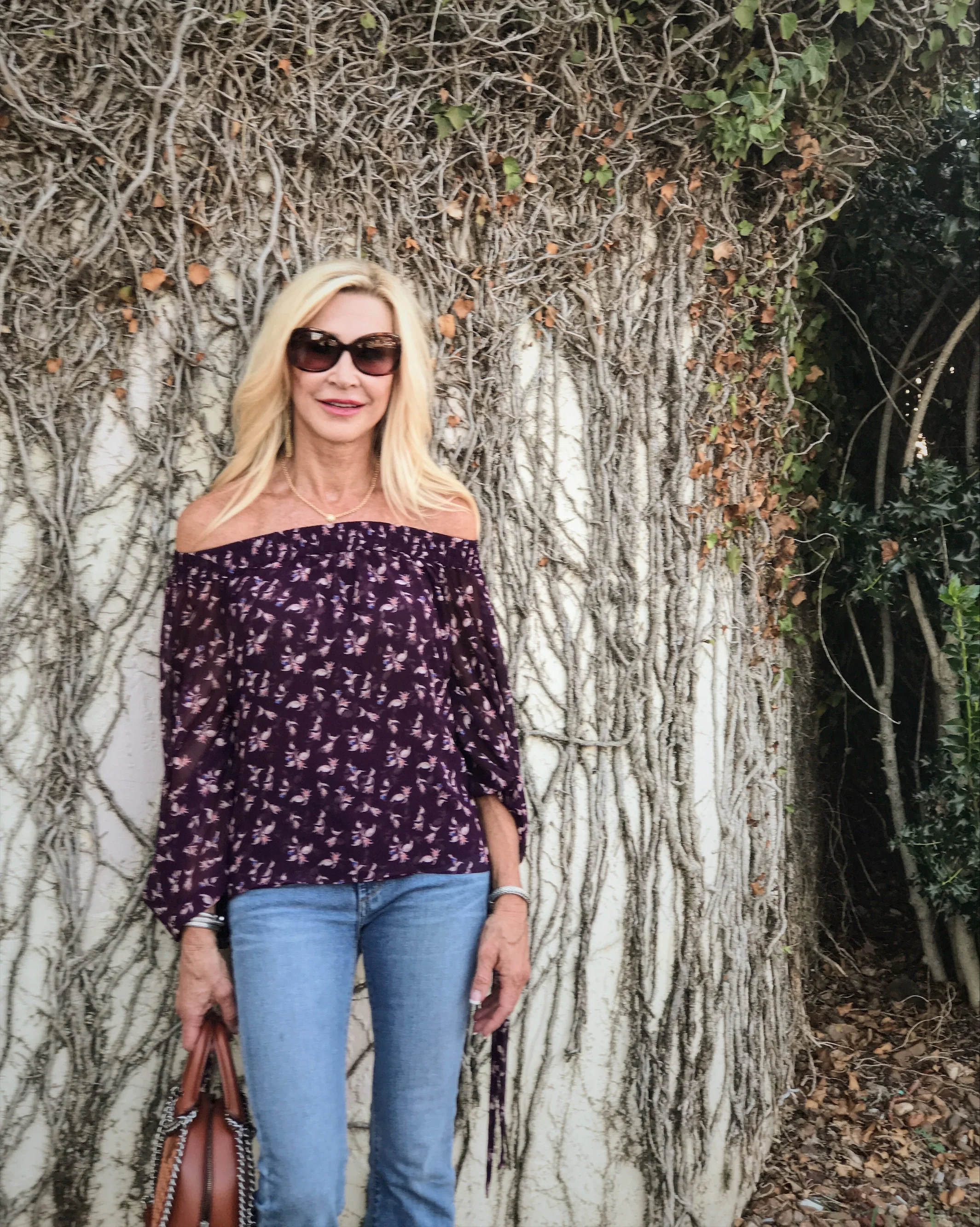 I'm wearing an off-the-shoulder top by Misa Los Angeles (similar here) with my Citizens of Humanity Jeans (love these) and Chloe shoes.  I'm linking a few similar items below.