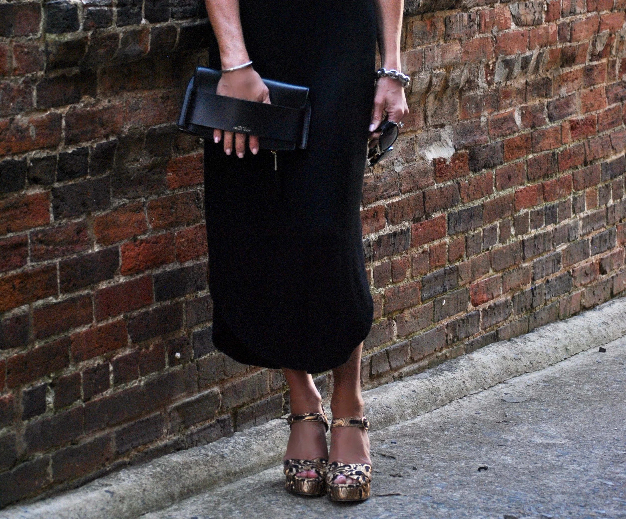We have had the most beautiful weather...not too hot, not to cold, but just right! I bought this dress to wear to Sarah and Will's rehearsal dinner and that night was so hot, humid and sticky, but today was a different story. If you're looking for the easiest...yet elegant, dressy...yet could be so casual, comfortable dress, then look no further. This dress from Michael Stars is all of those things and more! I wore it turned backwards several times, because the lace up front looks great in the back and the front looks equally good in the back! Sometimes, knit dresses get butt sprung (you know what that means), but not this one. It holds its shape beautifully. If I were taller, I would probably love this dress with flats, but it's so perfect with these shoes from Tory Burch. Let's talk about the shoes! They are very decadent and so rich going into the fall season and will also be amazingly beautiful with black velvet for the holidays. The bag, from Henri Bendel is very on trend, with the cute handle, but is still a classic clutch! This outfit is simplicity at it's best!