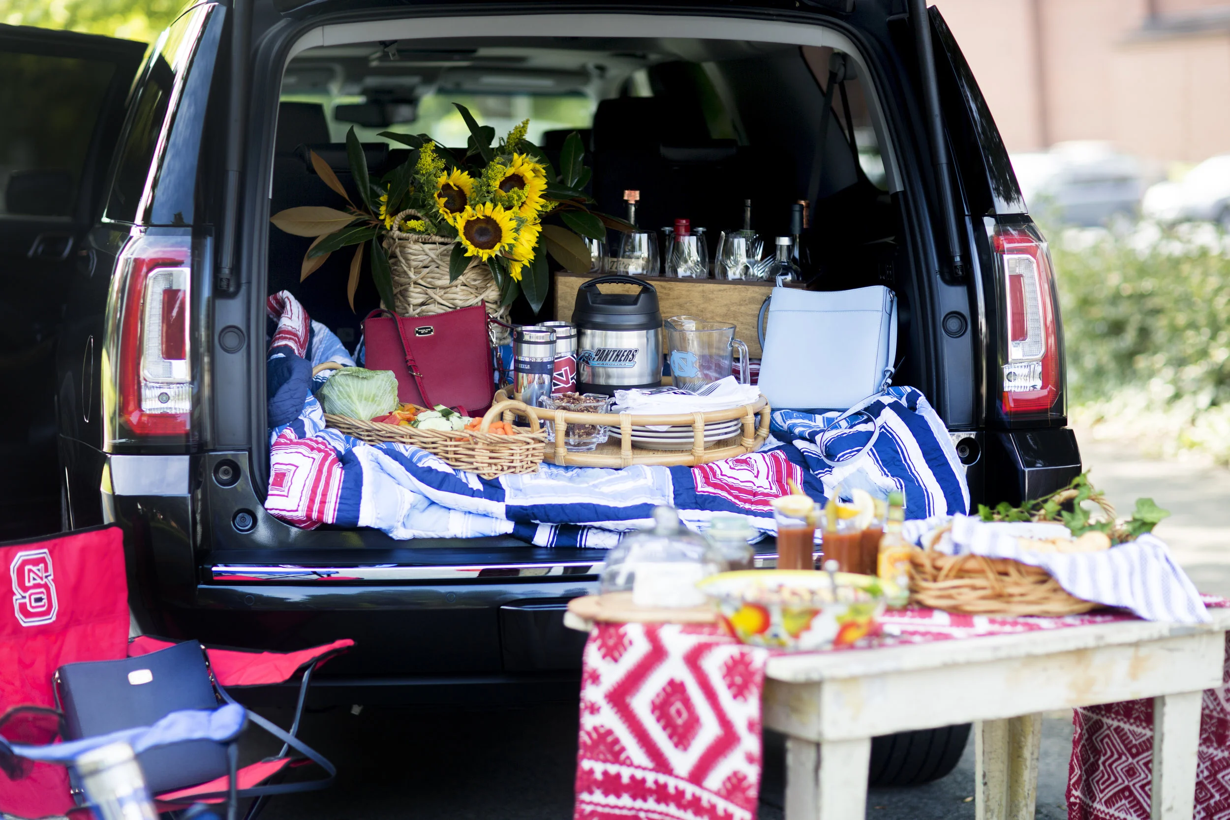 Football games have been a big part of our weekends for the last month or so and I created this easy and beautiful tailgate in collaboration with Tanger Outlets in Mebane, NC. This post includes some delicious recipes for your next tailgate! This beautiful picture was taken by Sara-Anne of Sara-Anne Photography.