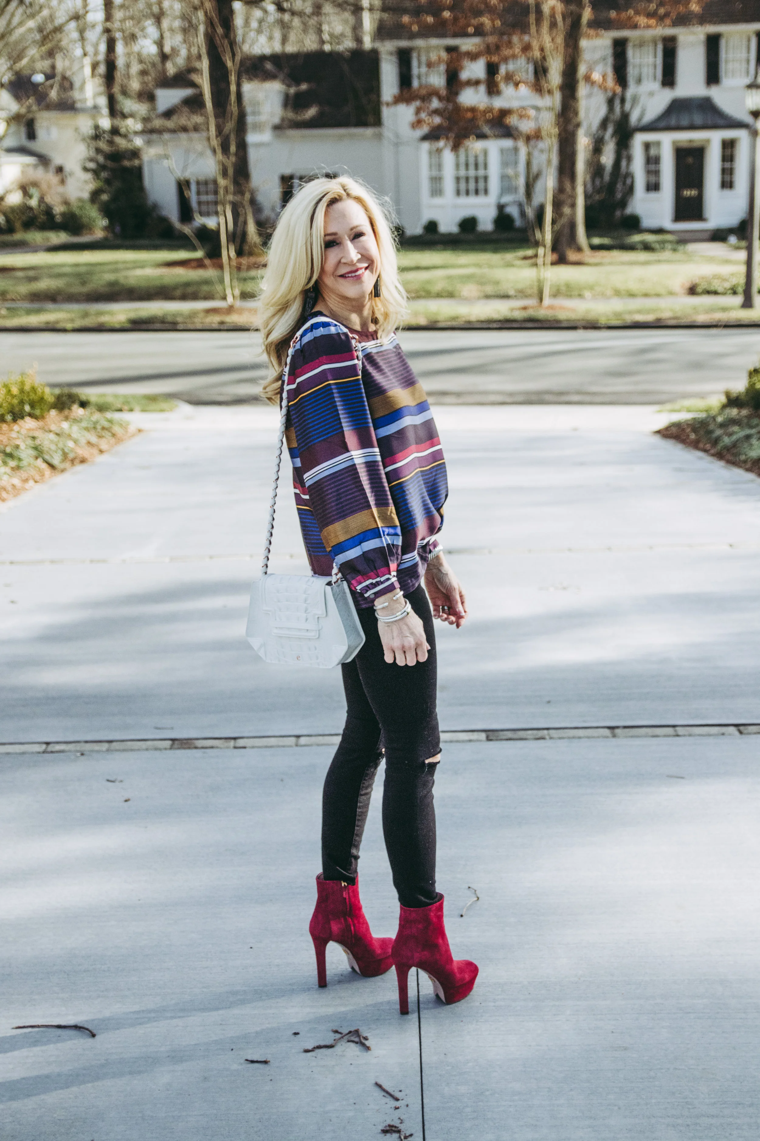 Loft also had a great sale last month and I got several blouses and sweaters to get me through the next month or so. By the end of January, I'm always so tired of everything in my closet and these pieces added some color and made the jeans that I've been wearing all winter feel freshened up a bit. I'm a little obsessed with my new white bag (similar here in a beautiful light green and also comes in cream) and always looking for a reason to wear these Gucci boots (these are amazing)!
