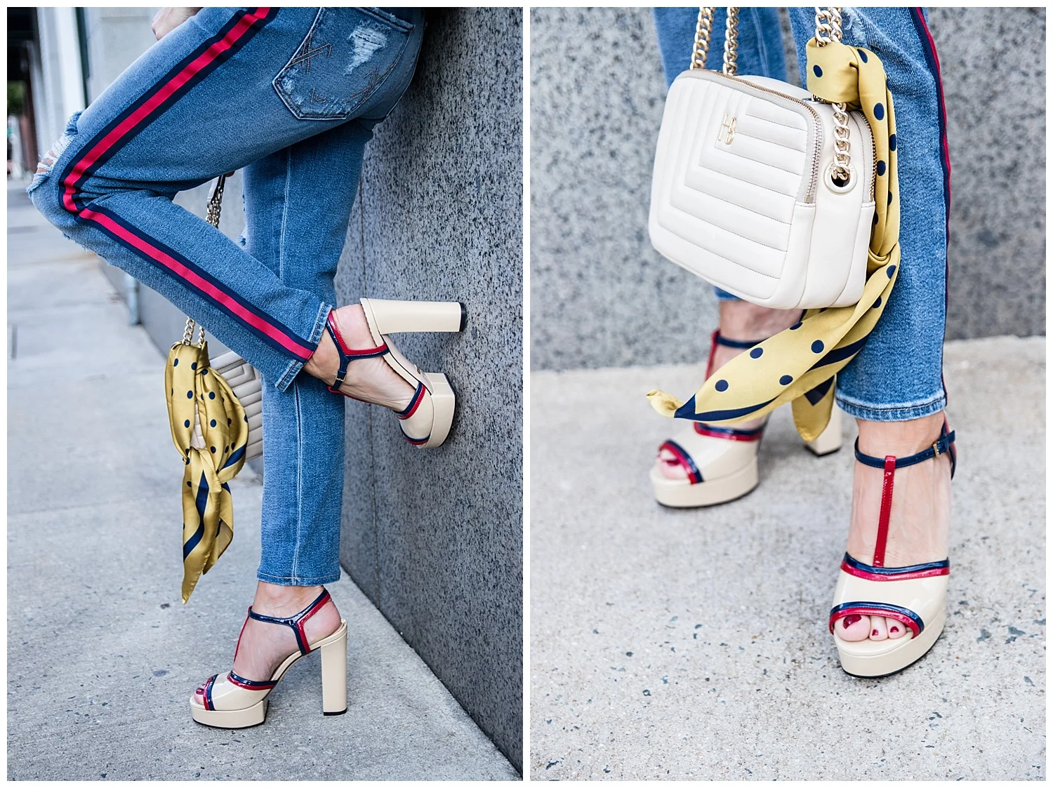 The side-striped denim trend may be new, but it’s already very popular with the street-style crowd. The striped jeans come in so many washes and styles, from wide leg to skinny, and feature a race strip that runs down the outer side of your pant leg. The stripes range from red to pink to one of my favorite - leopard! This is my take on side stripe denim…and yes you can wear this trend, no matter your age! I’ve linked lots of options below so keep scrolling!