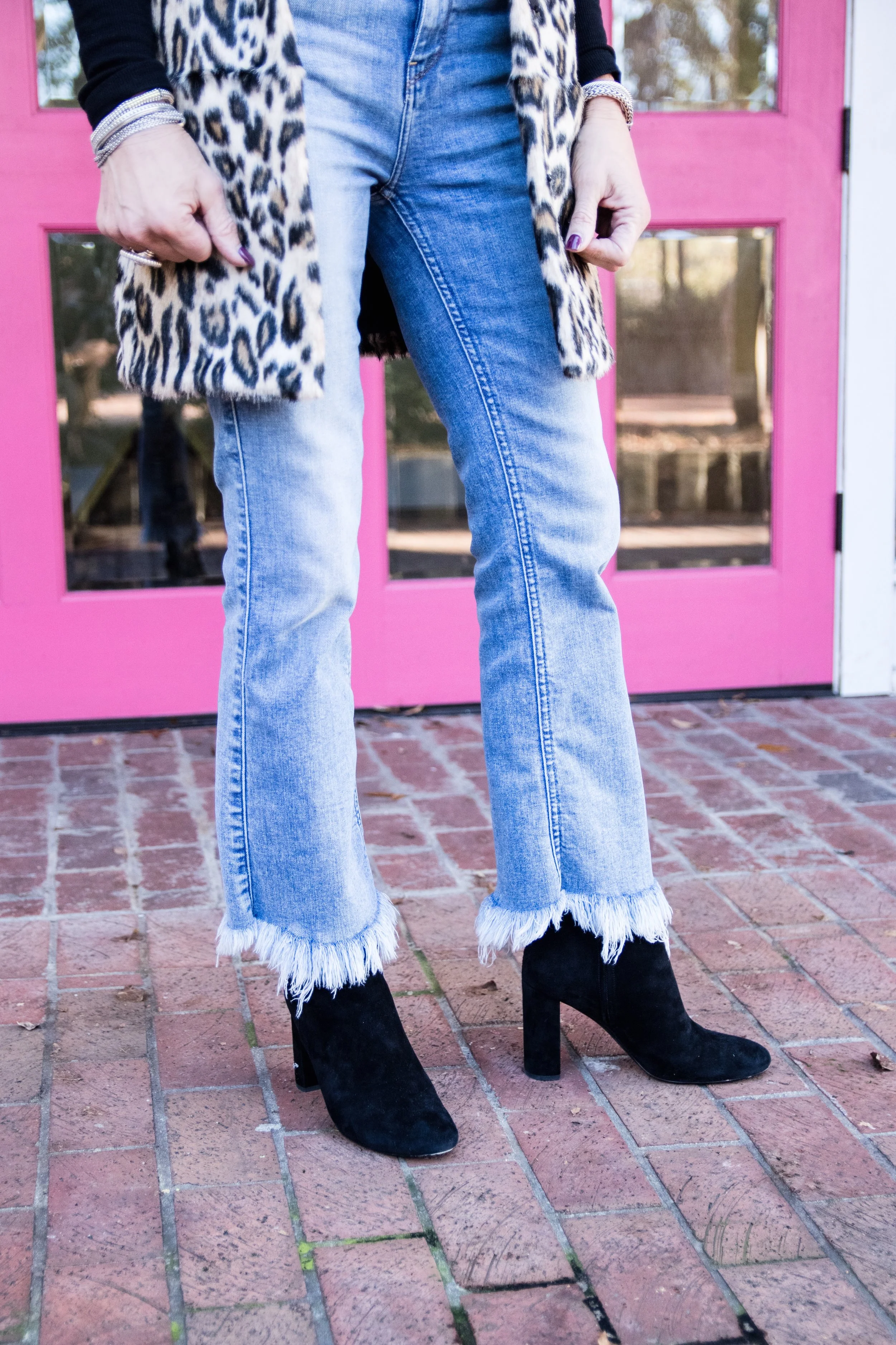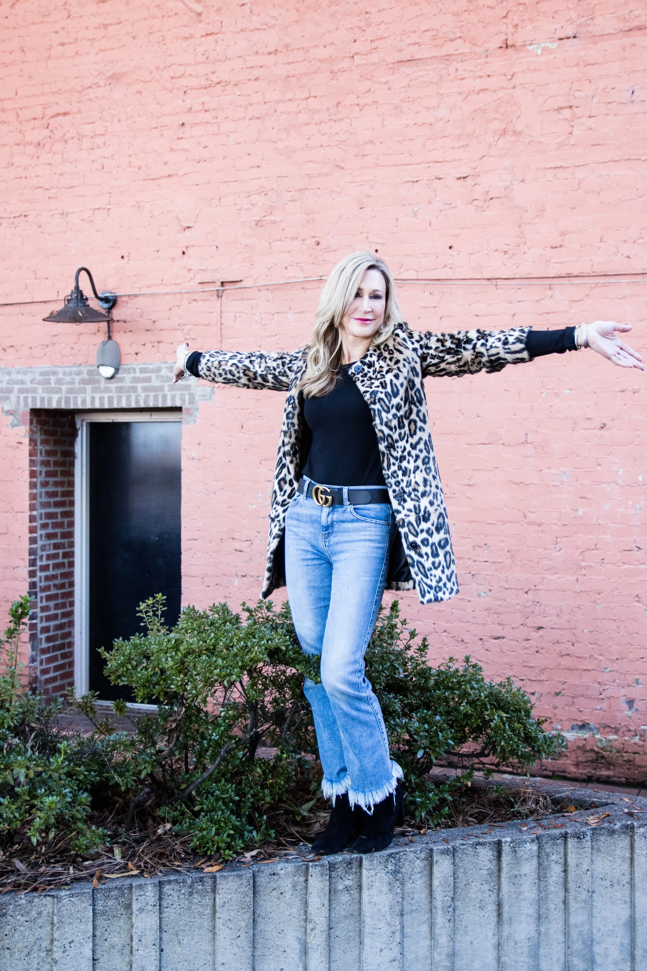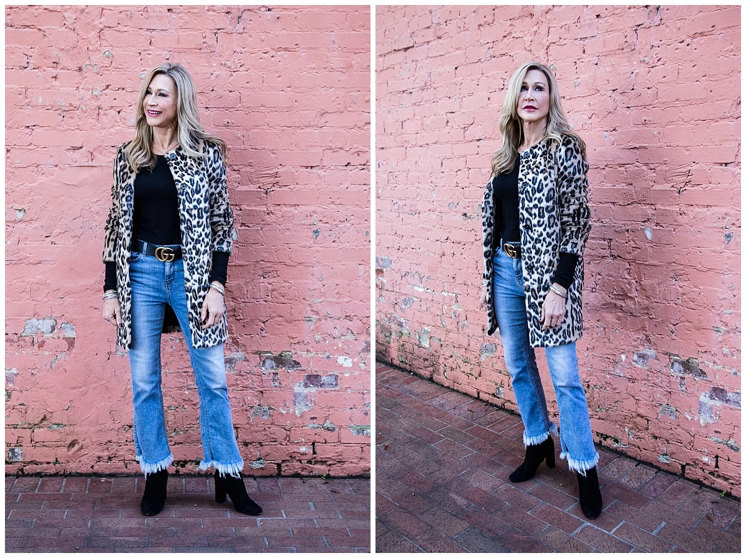 Double trouble in the outfit above. Iβm wearing leopard booties and a leopard coat! Mixing prints is bold, but fun!