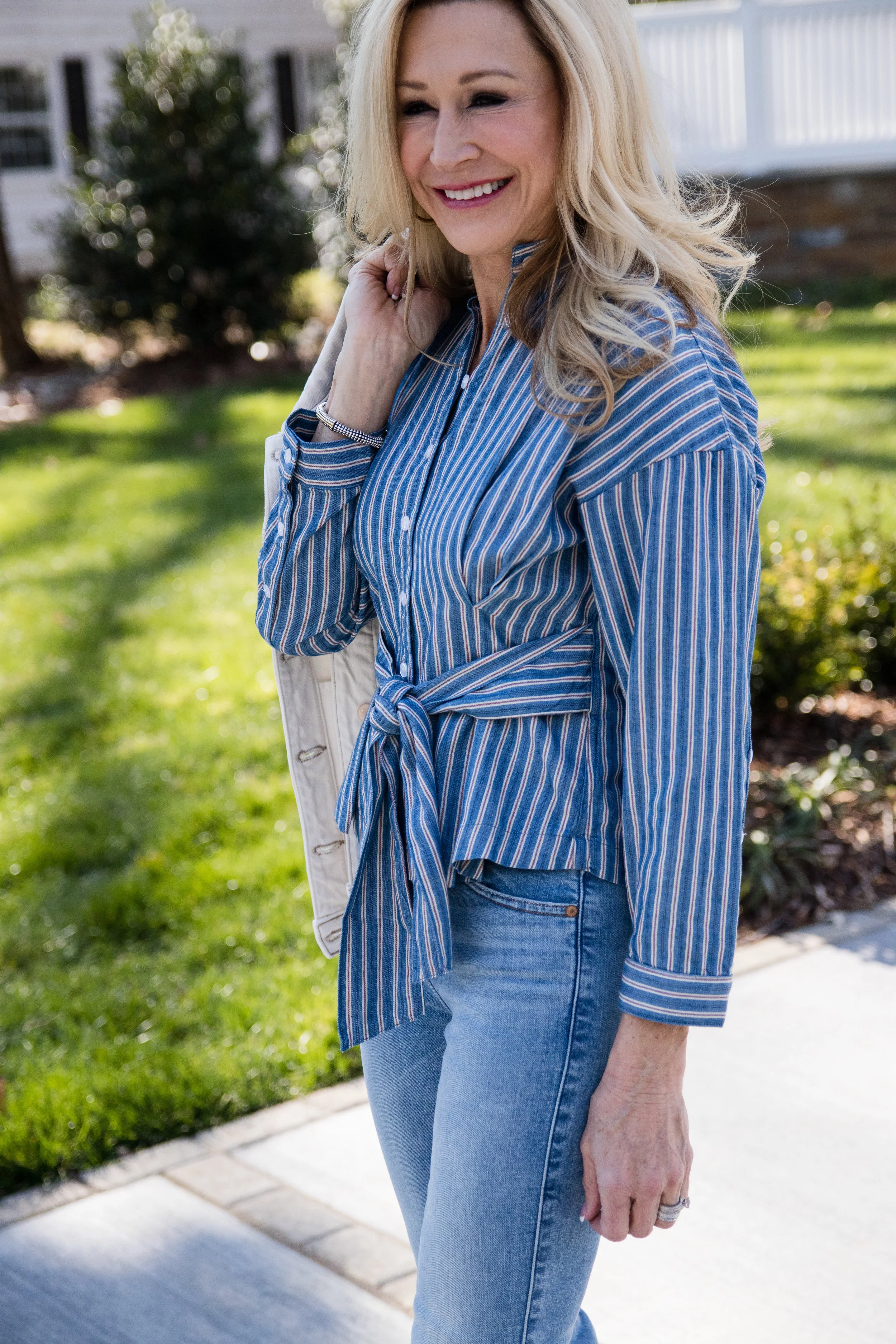 Two other items that I find absolutely essential for the sometimes still cool days of spring, are a military jacket and a chambray shirt. The shirt can be layered over a sleeveless tank as a light layer and a military jacket is a neutral item that you'll throw on with everything! I love them both with white jeans!