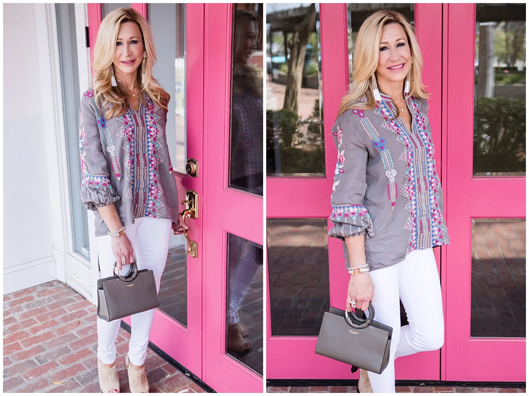 Bright floral embroidery continues to be a popular trend for Spring 2018 (think Gucci). I've been a huge fan of Johnny Was for several years now and while this brand has a boho vibe unlike Gucci, it is still very popular and I think well suited for laid back summer dressing! I'm going to be living in this beautiful embroidered tunic. I can see it with shorts, jeans and dressier white pants. It's just my style! If you live in North Carolina, Rebecca & Co. in Greensboro, has a great selection of Johnny Was.