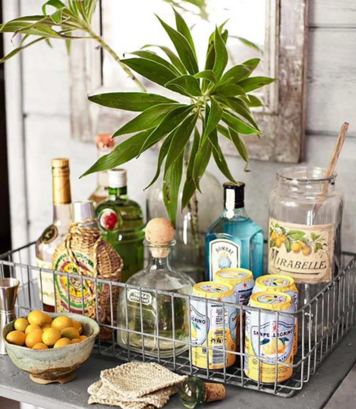 Create a margarita bar at your next summer get together! Gather the ingredients in a vintage basket and let guests mix their own!