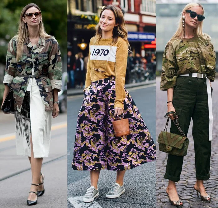 If street style is any indication, 2018 is all about making bold fashion statements and the camouflage trend is no exception. This fall, reach for eye catching pieces and make them the focal point of your look. Whether you're styling a camo jacket with an outfit that is otherwise head-to-toe white, or building a look around a pair of camo trousers, you simply canβt go wrong by adding this print to your wardrobe.