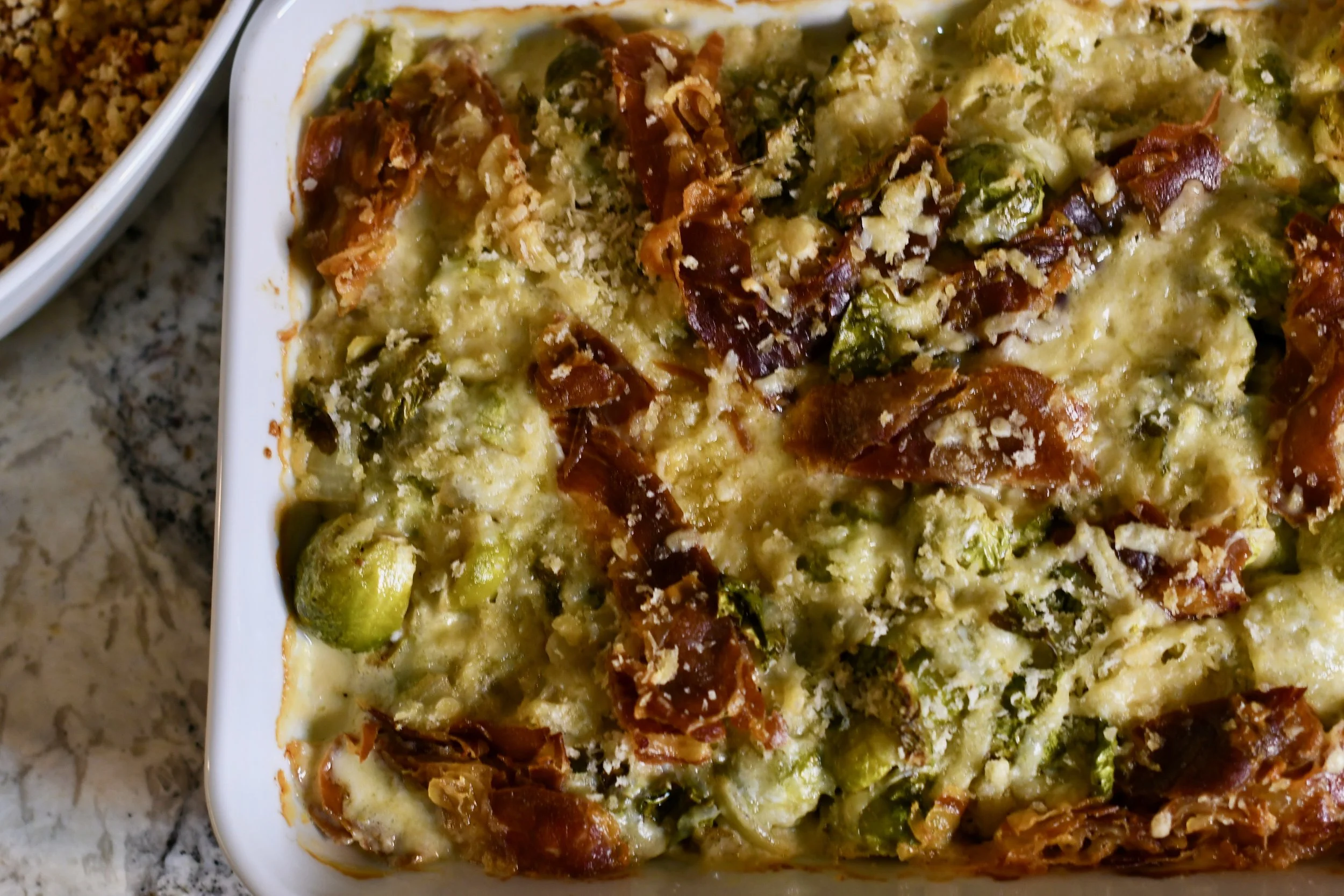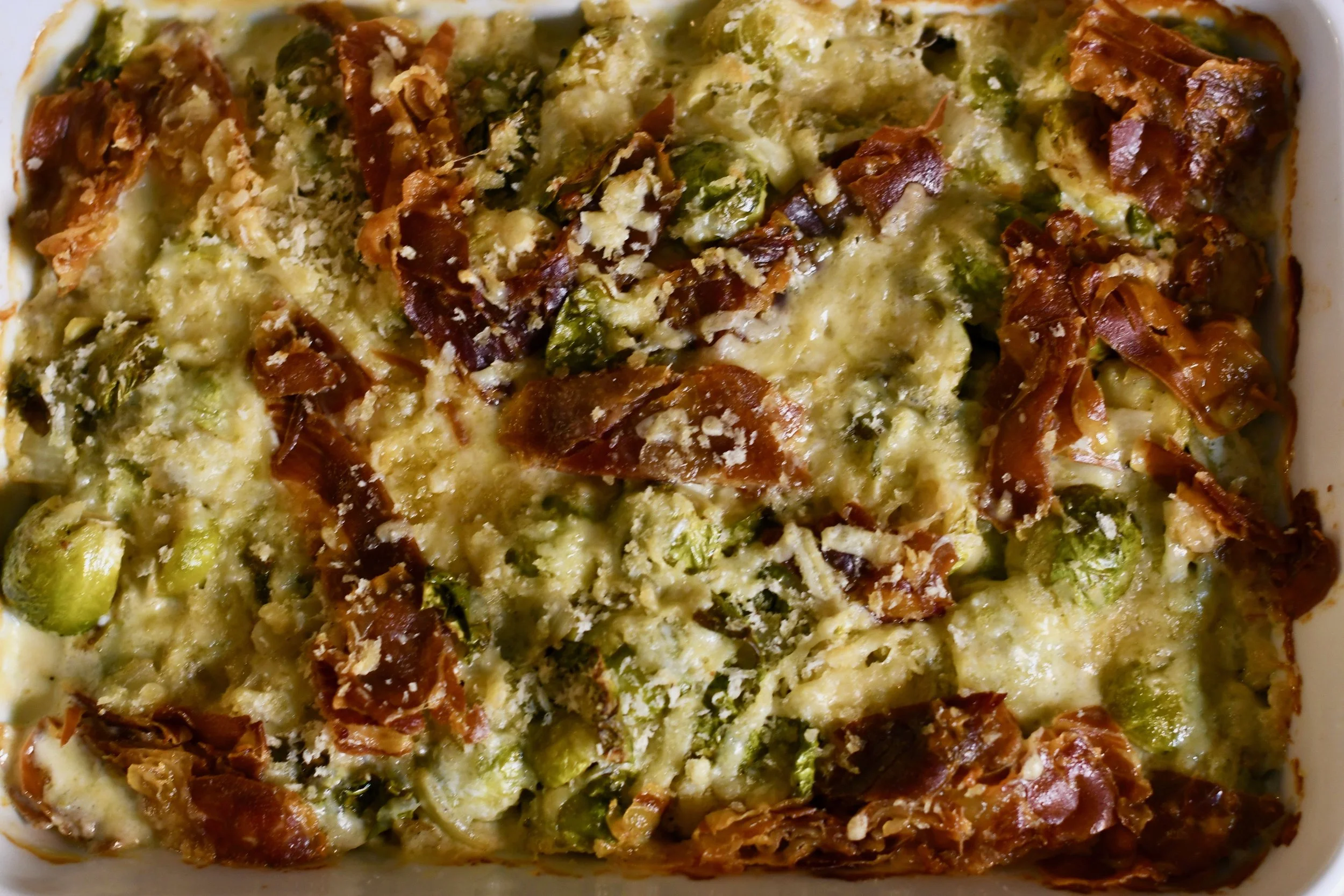 Gratin of Brussels Sprouts, Gruyere, and Prosciutto (my favorite)
