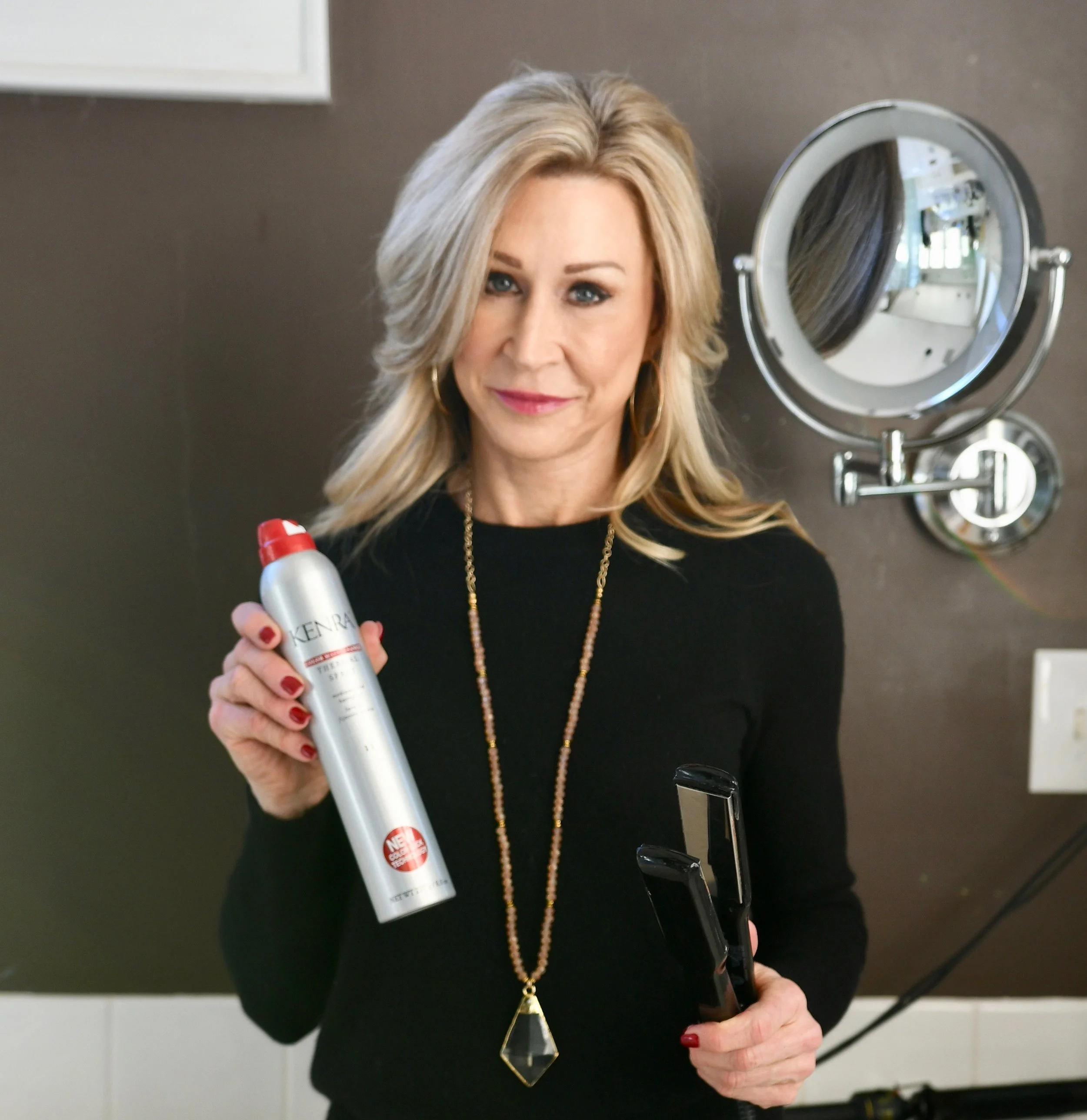 Admittedly, I donβt wear my hair up often, but when I do, I love Kenra Color Maintenance Thermal Spray to keep all the little whispy pieces in place. Itβs a medium hold but still feels extremely light on your hair leaving it touchable and soft.