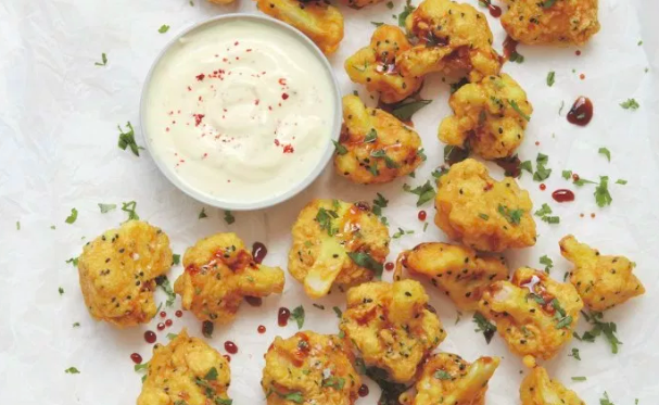 Turmeric Battered Cauliflower with Saffron Yogurt