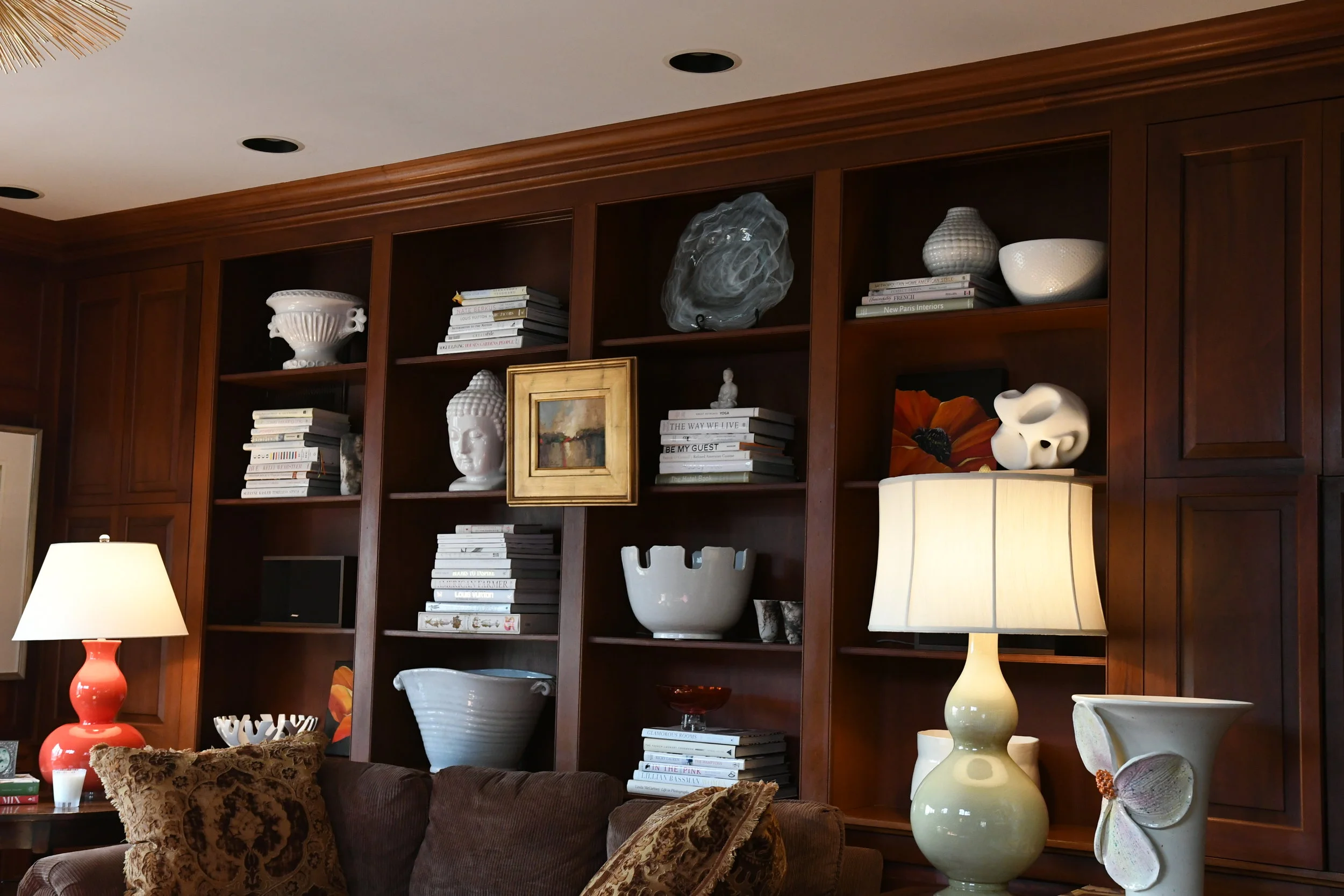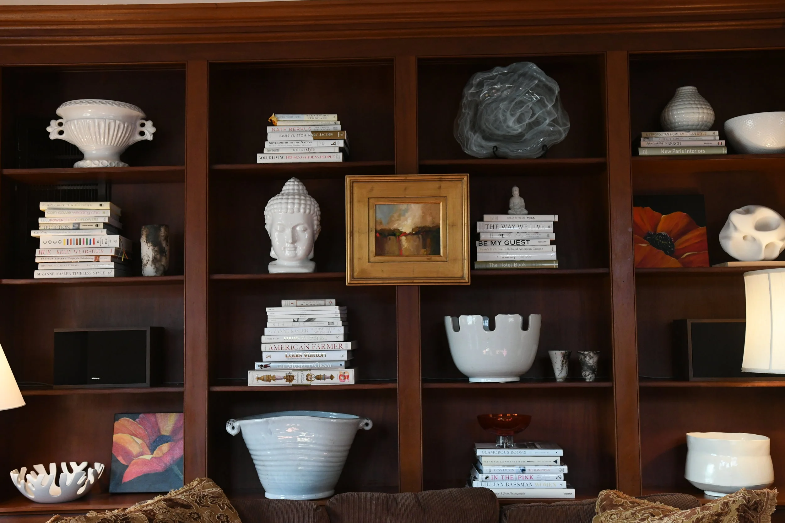 Just yesterday, I decided on a whim to redo the bookshelves in our den. They hadnβt been changed in quite some time and needed a little refreshing. I started by taking everything off of the shelves and began with a clean slate. I was literally amazed when I looked at the pile of books in the floor and wondered what in the world I would do with all of them. I then went around the house and gathered my absolute favorite books, which led to completely trashing almost every room! Needless to say, I had quite a job on my hands, but managed to get everything put together before I fell in the bed, exhausted. It was so nice to get up this morning to what felt like a new space. Keeping things in your home the same, year after year, can be so boring. Rearranging has a way of freshening up a space and giving you new life at home. It also forces you to purge and get rid of the things that no longer serve you. I probably still have books that I need to donate, but that project is for another day!