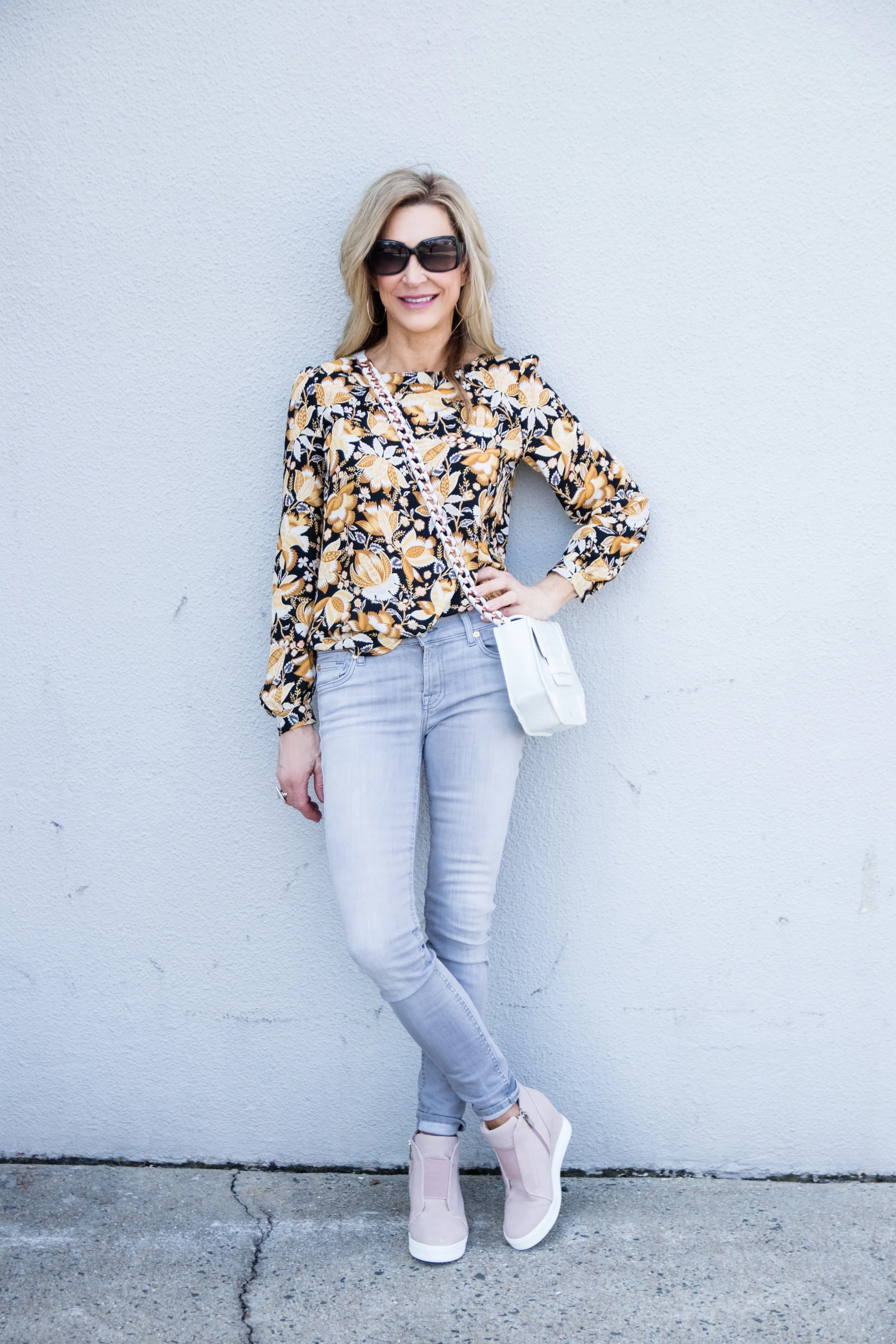 Mix Sporty Shoes With a Floral Blouse