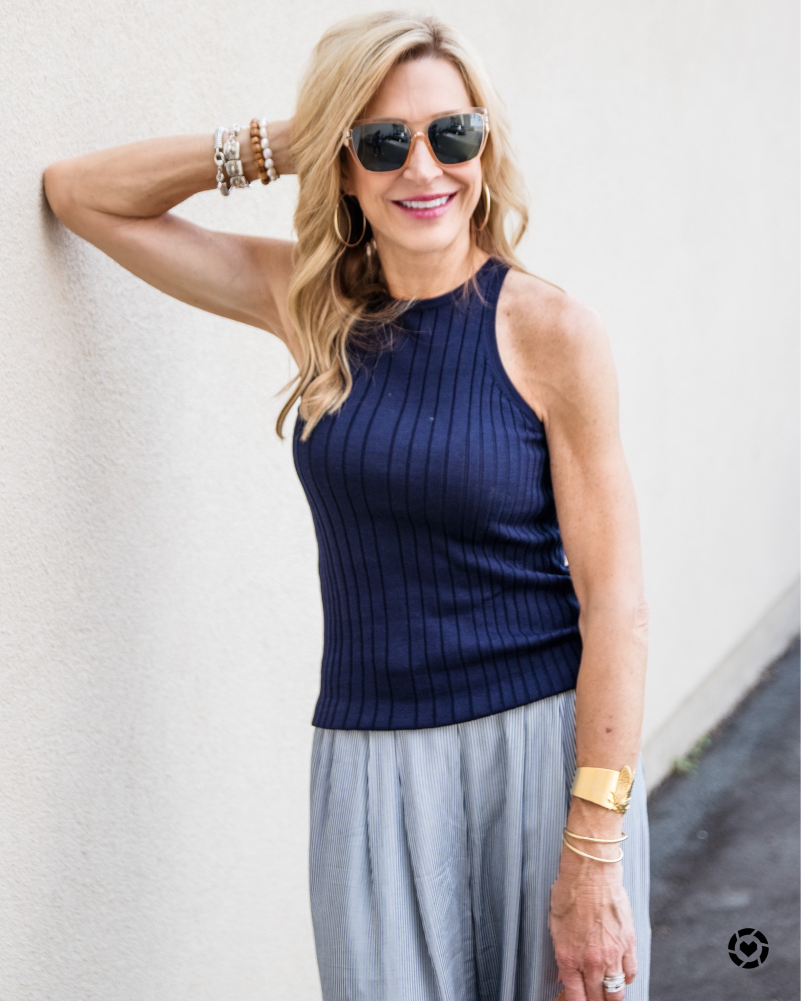 Wearing Wide Leg Pants & a Trina Turk Tank - Easy Outfit Idea + Memorial Day Sales