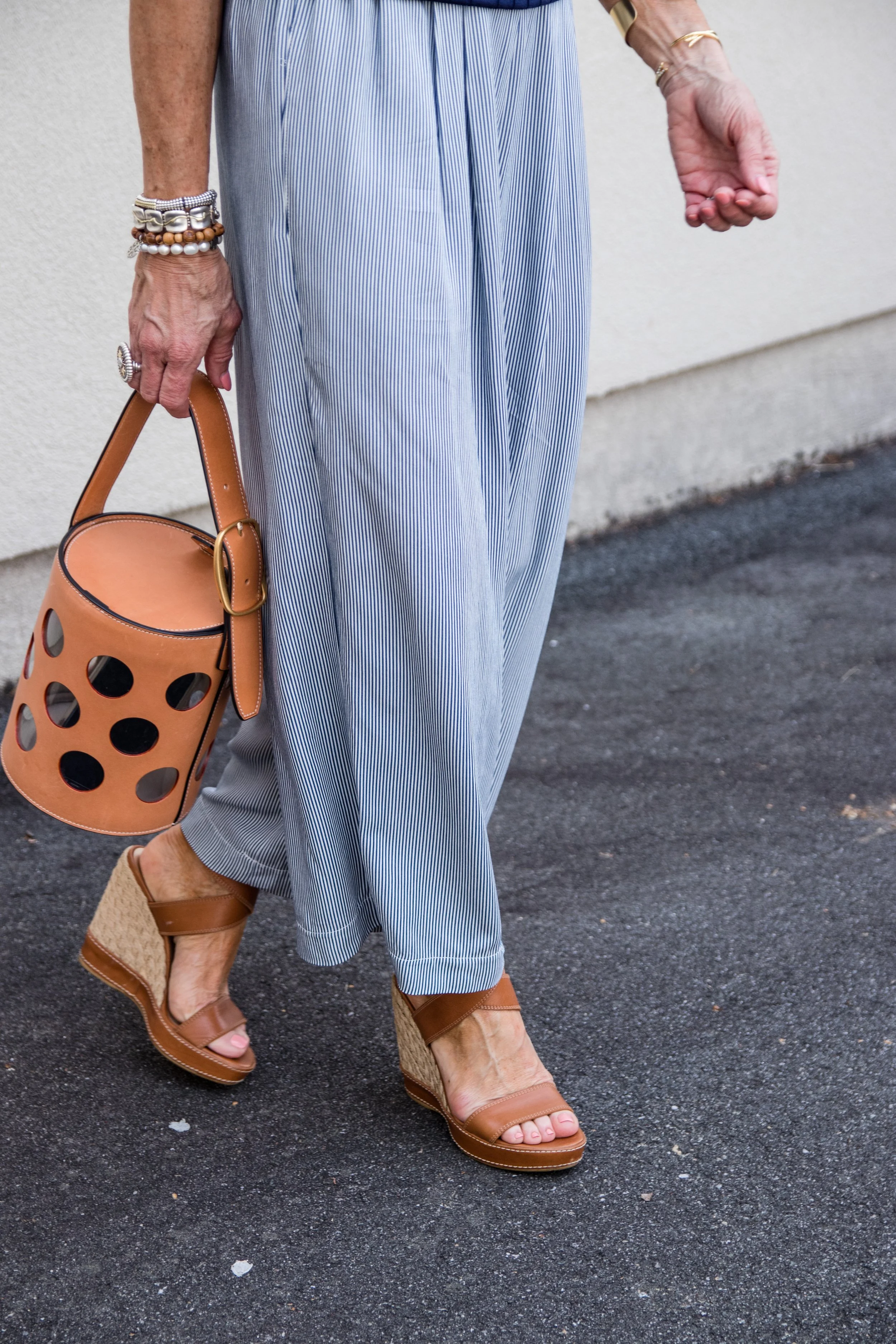 Happy Friday Everyone! This year is flying by, but I for one, am really happy that summer is here! I love the easy feel of long summer days and the warm temperatures. The outfit Iβm featuring today is perfect for so many different occasions this summer! Wide leg pants are a huge trend and theyβre easy, breezy and so comfortable. Iβve worn these pants previously on the blog (last seen here) and today, Iβm styling them a little differently! I paired them with a fitted sweater tank by Trina Turk, a very versatile bag by Tory Burch and Stuart Weitzman Sandals that Iβve had for a long time. This outfit is casual, comfortable and cute! I couldnβt find the exact pants or shoes to link, but Iβm linking similar so you can recreate this summery outfit!