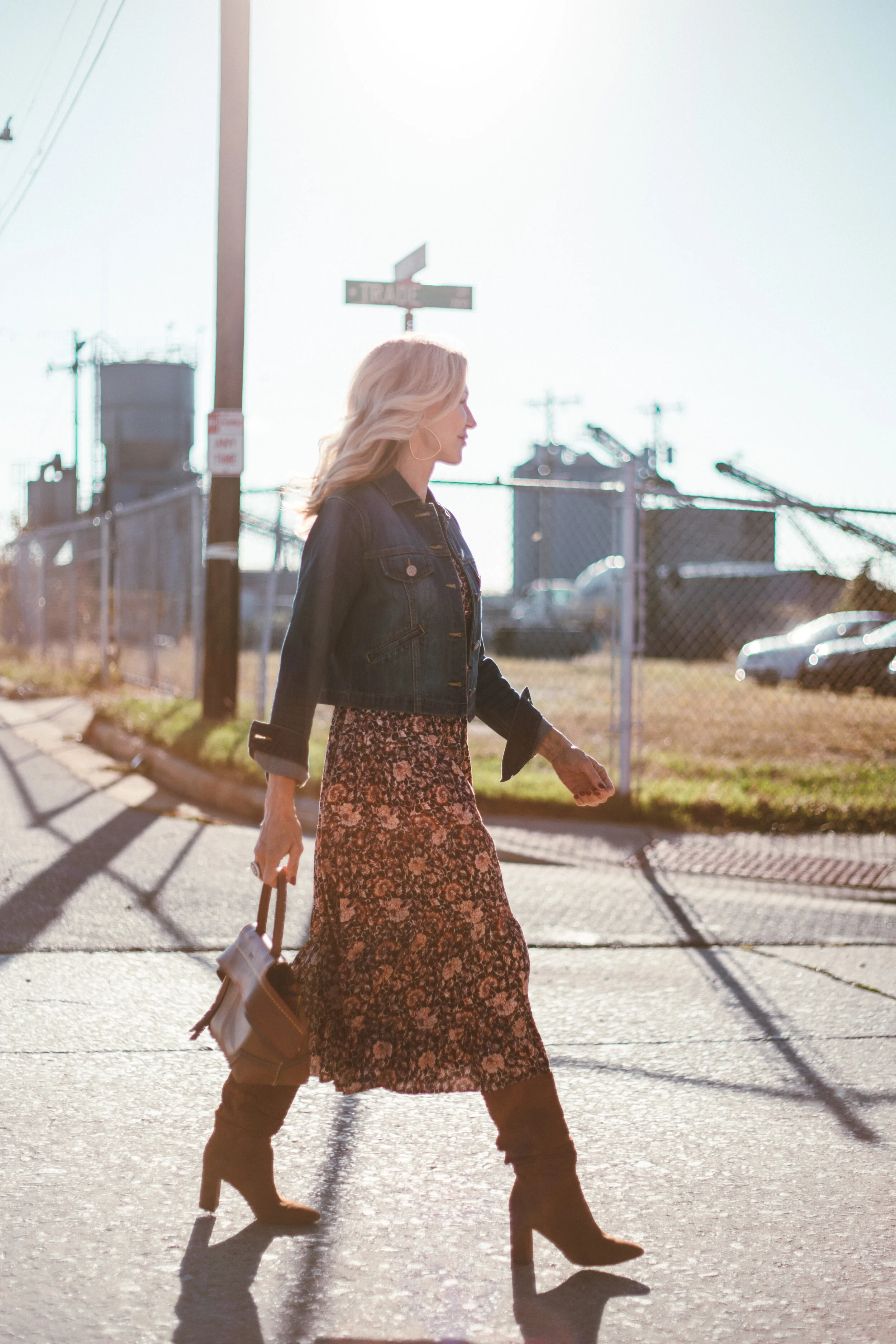 Even though florals were never actually groundbreaking for spring, fall floral dresses are a different story. While the thought of flowers might remind you of fresh blooms of May and June, botanical prints of marigold, brown and deep purple, have a certain charm that feels especially magical now that the leaves are turning and the colder weather is here.