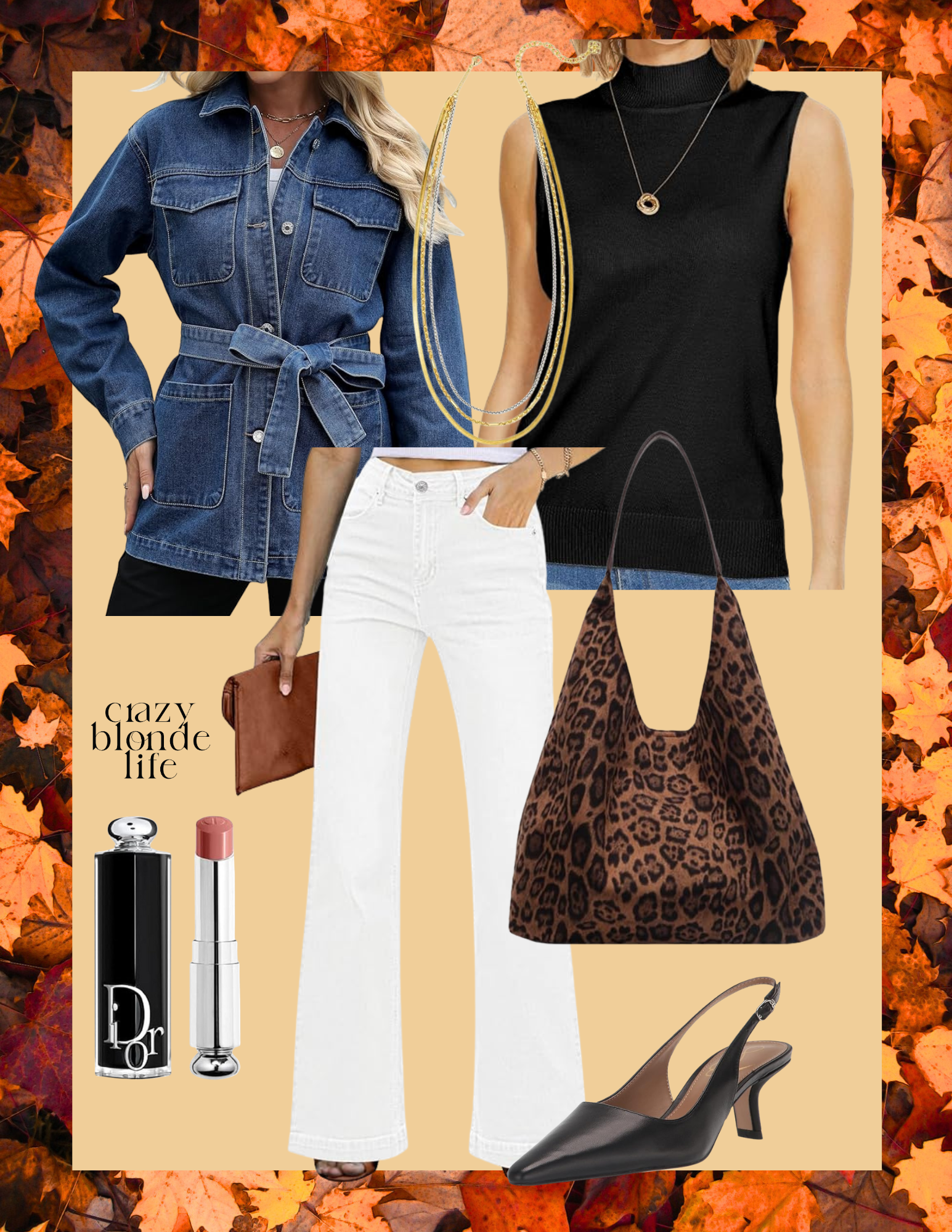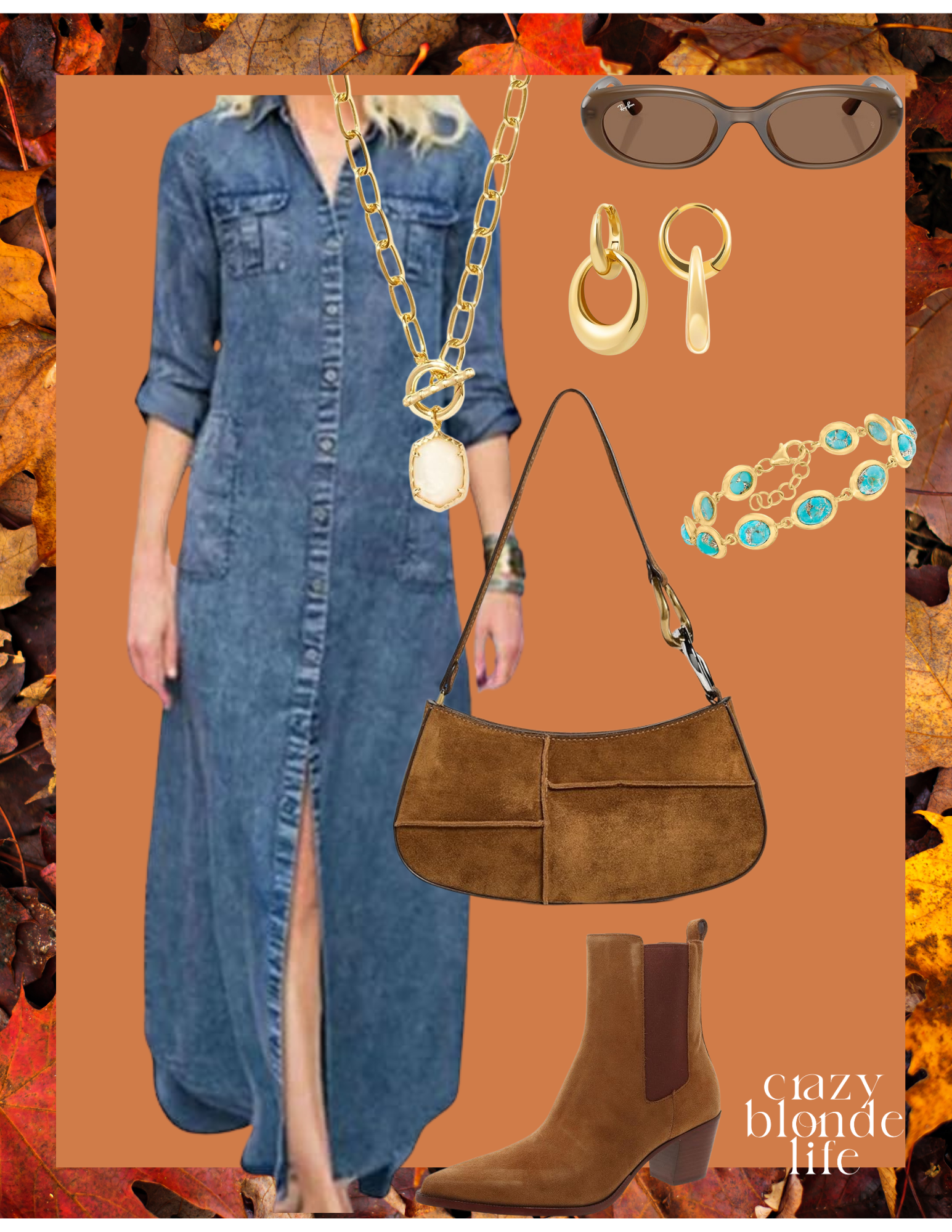 Now…about these looks! You know I’m a denim girl and these looks are all fabulous ways to style denim…from a denim maxi dress styled with booties, a tweed jacket styled with wide leg jeans, white jeans with a belted denim jacket and olive green and grey jeans, there is something for every style. These looks are polished and wearable and perfect for the weekend or the week ahead!