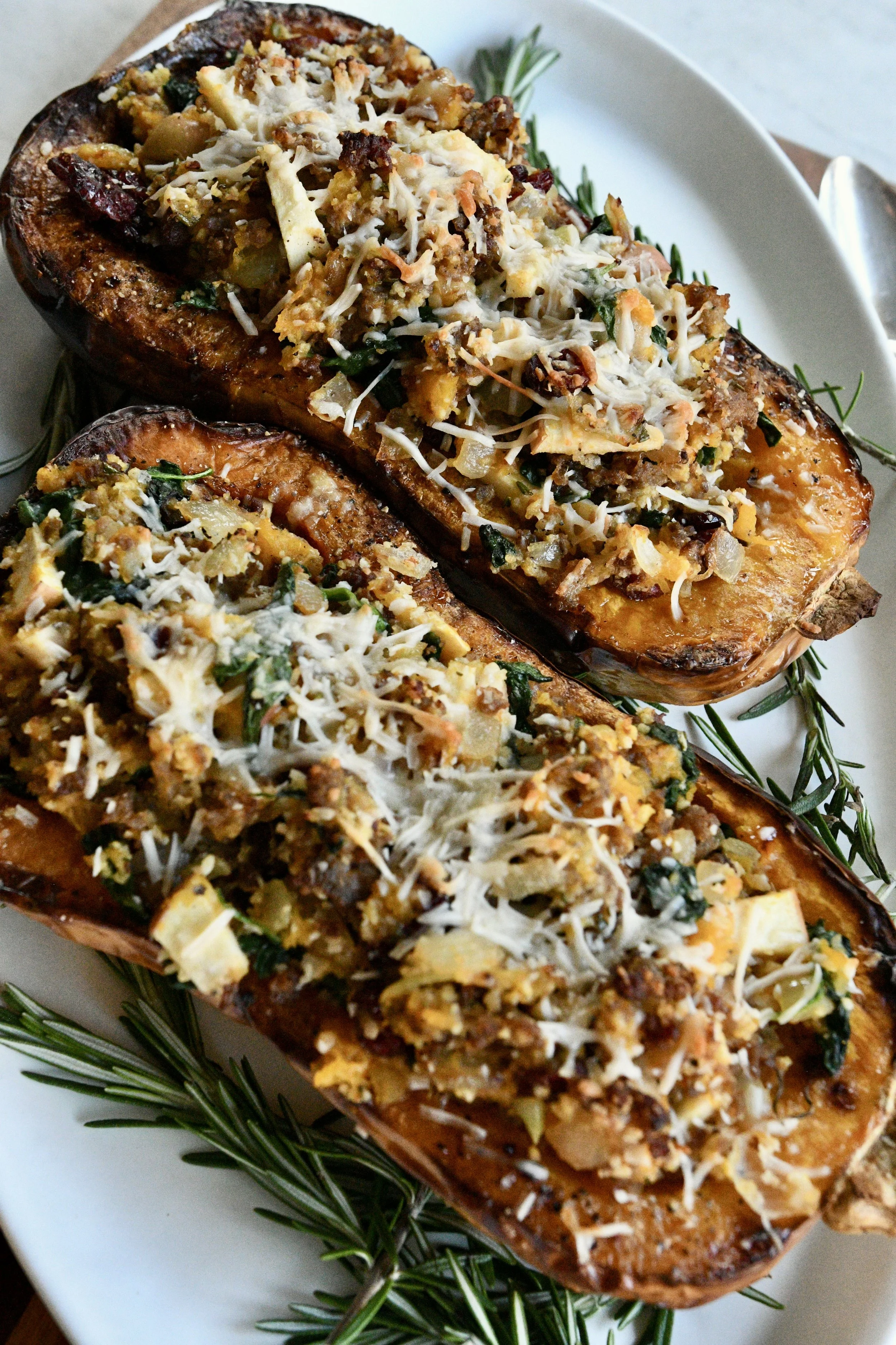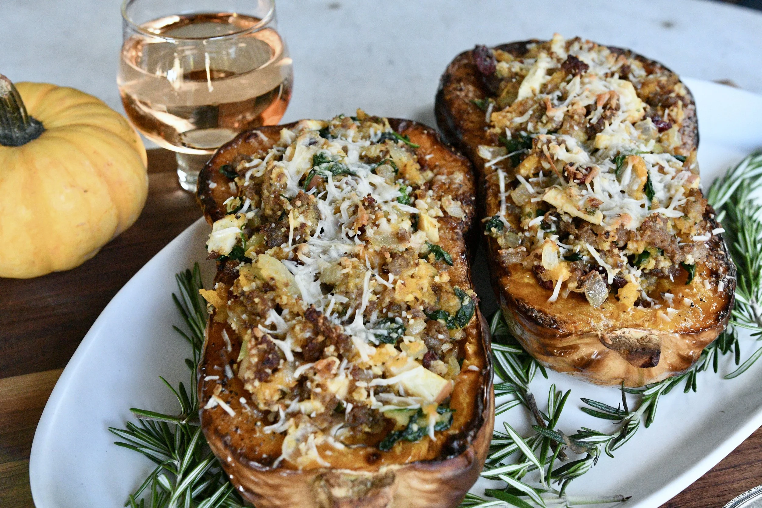 I have been craving the flavors in this Sausage & Spinach Stuffed Butternut Squash. The combination is so delicious and it is such a gorgeous dish to serve!