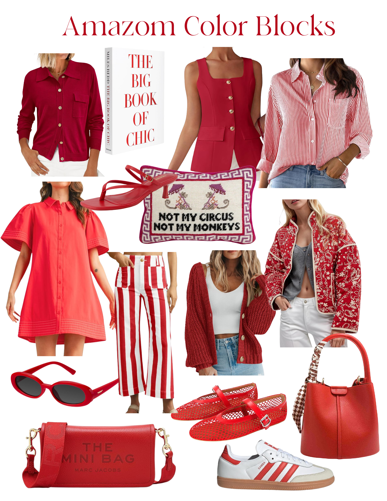 I’ve heard it said that you should have a touch of red in every room…even if it’s just a coffee table book! Bold color is also trending for fall 2025 so why not wear a red dress, sweater or top…it’s an easy way to be on trend without looking trendy! I’m also loving the red accessories that look great with just about every color!