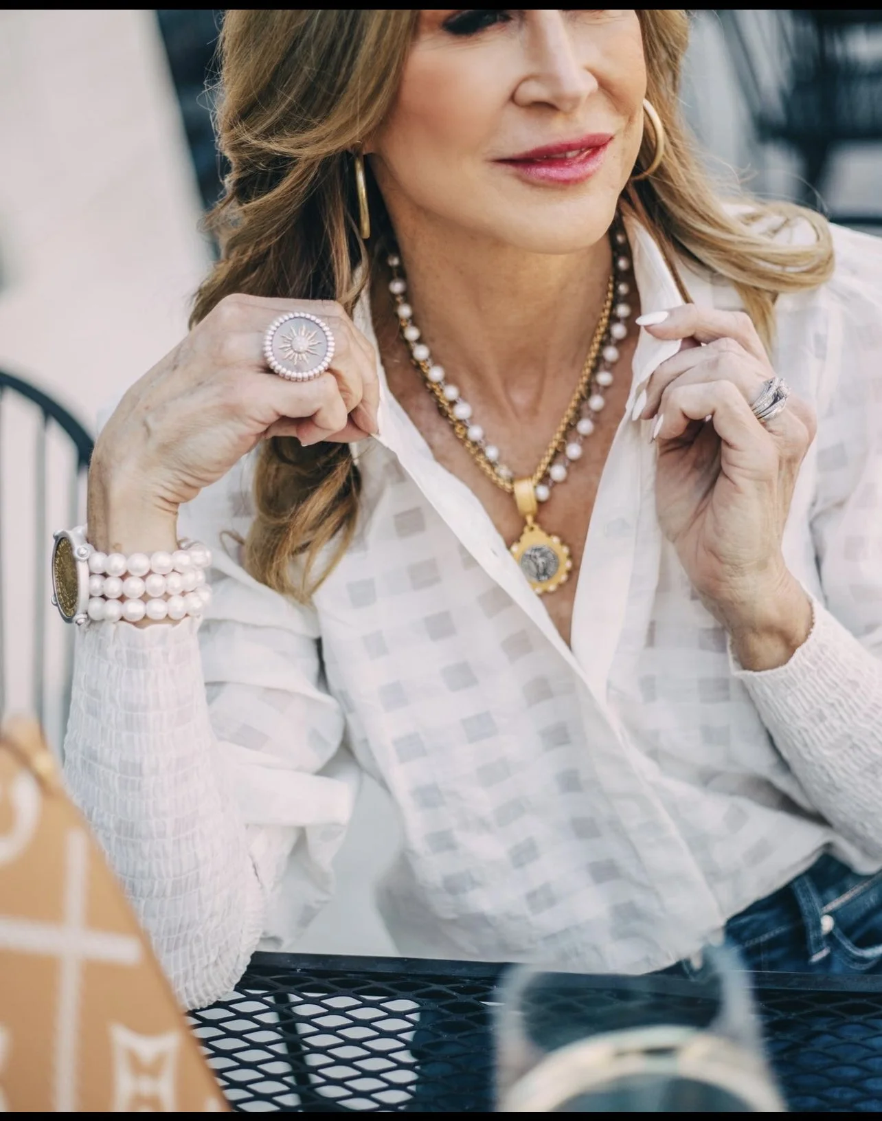French Kande is owned by Kande Hall who started the company after picking up a crusty medallion in Paris in 2009…she attached the medallion to a strand of pearls, loved the look and her company was born! It’s such a fun story and now she’s living her dream and you know I’m all about living your dream!
