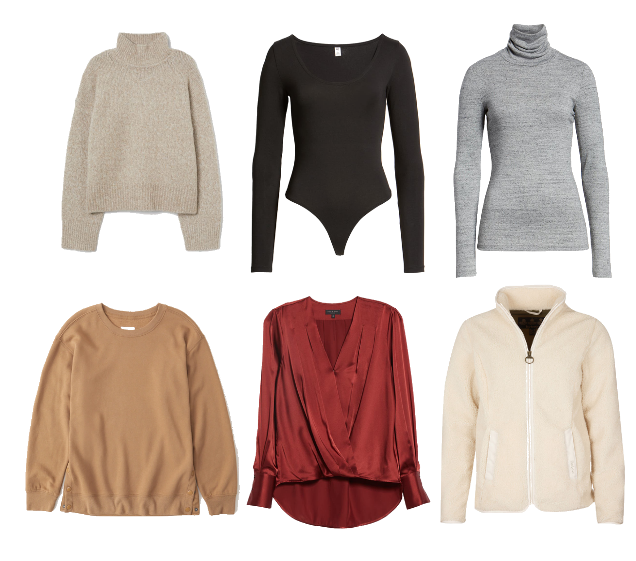 H&M Turtleneck Sweater | BP. Long Sleeve Bodysuit | Splendid Ribbed Turtleneck | Abercrombie Side-Snap Boyfriend Sweatshirt | rag & bone Lei Wrap Front Silk Blouse | Barbour Millhouse Faux Shearling Zip Jacket | Re/done 90s High-Rise Ankle Crop Jeans | Frame Le Sylvie Cropped Raw Edge Jeans | SPANX® Faux Leather Leggings | Socialite Waffle Knit Joggers | H&M Knit Dress | Madewell Plaid Paperbag Waist Tapered Pants | BLANKNYC Faux Shearling Jacket | Bernardo Barn Plaid Print Coat | Madewell Women's Chevron Packable Puffer Jacket | J.Crew: Ribbed Beanie | H&M Plaid Scarf | Madewell Zip-Top Medium Transport Tote | gorjana Palm Coin Pendant Necklace | Brinker & Eliza Jumbo Tubular Hoop Earrings | Rebe Faux Fur Mules - A New Day™ | Tessie Sherpa Lace Up Hiking Boots - Universal Thread™| Madden Girl Dafni Bootie | Blondo Cayla Waterproof Chelsea Boot