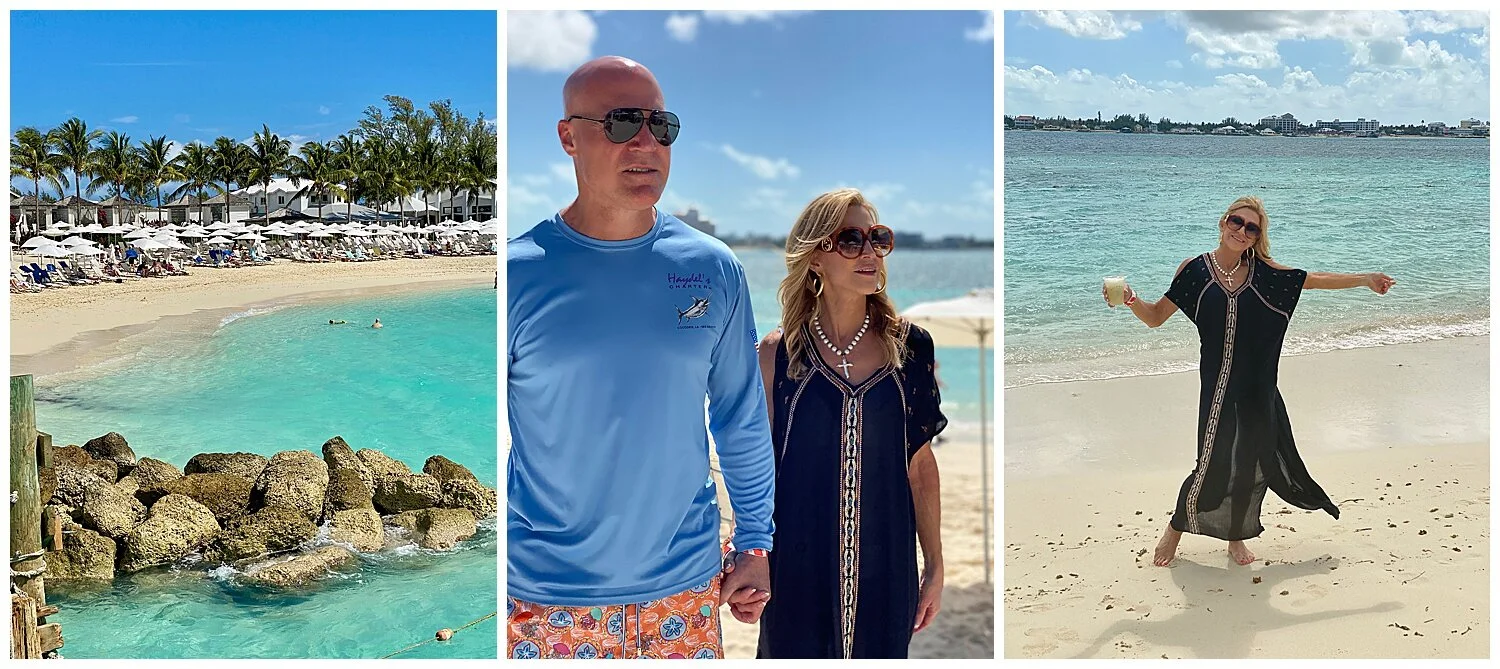 Our itinerary changed slightly during the cruise, because of weather, so our only on shore excursion was in Nassau. We took a small ferry from the ship over to the island and had a wonderful day! We swam with dolphins, ate some local food including conch fritters (my favorite) and enjoyed a margarita (or two)! The water was so blue and crystal clear. It was a great day, but Iβll admit that I was happy to be back on the ship to rest when it was over.
