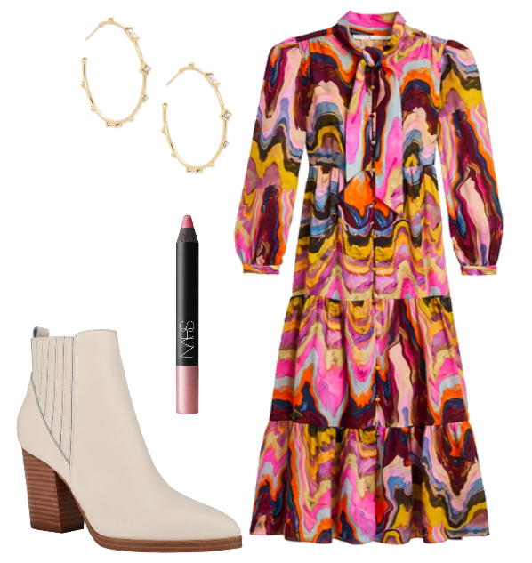 Knit dresses are the dresses of the season this year! I’m loving the colors in this one by Farm Rio and it’s perfect paired with the chunky bootie!